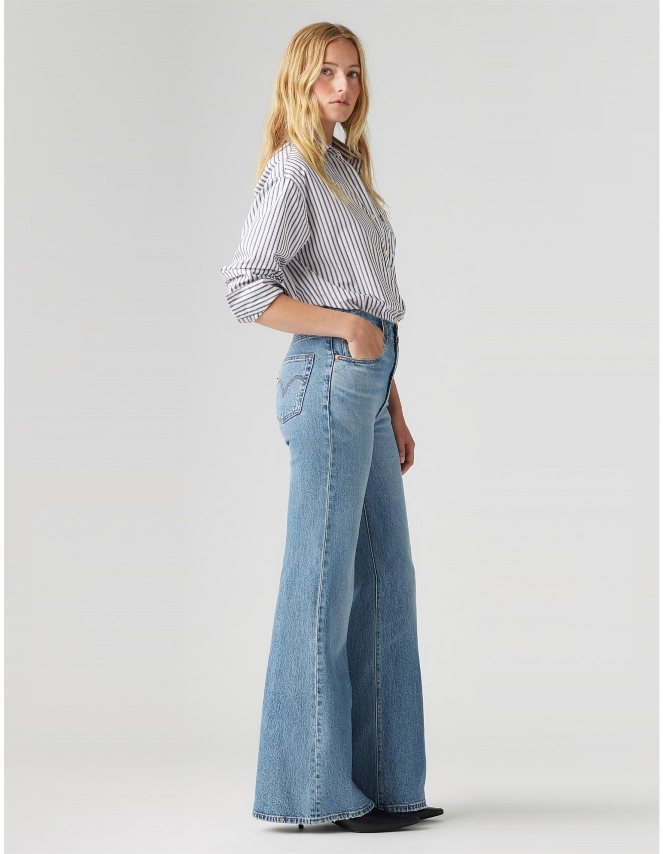 Levi's highest high rise yet. The Ribcage—with its soaring 12-inch rise — has become a waist-defining, leg-lengthening obsession. This fit will show off your figure and make you feel as amazing as you look. The best part? They feature an ultra-flattering, vintage-inspired bell leg silhouette.