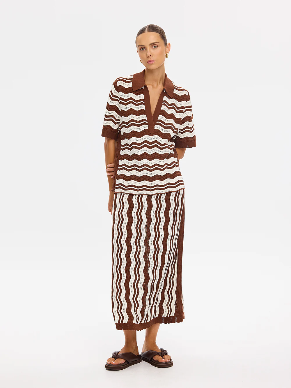 Sarah Knit Top - Choc Ivo Stripe
