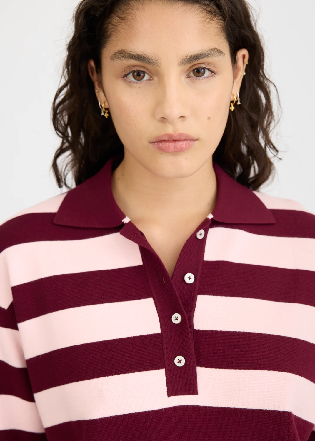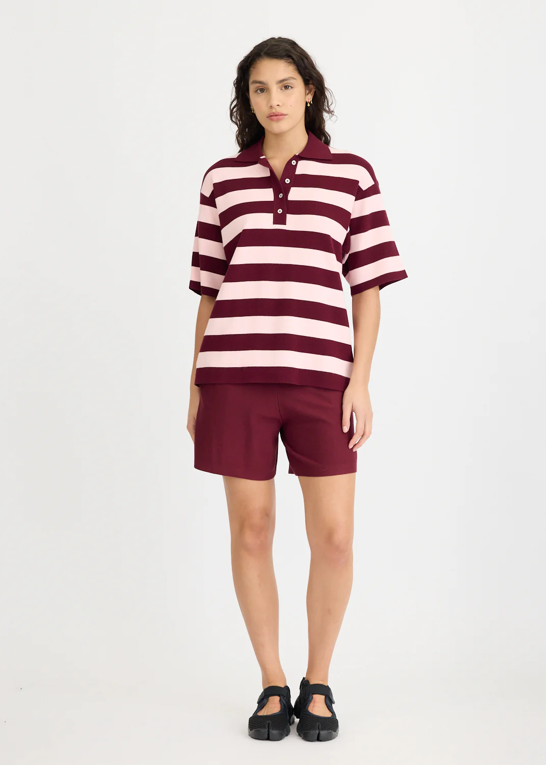 Rossy Knit Polo - Cherry /Soft Pink Stripe