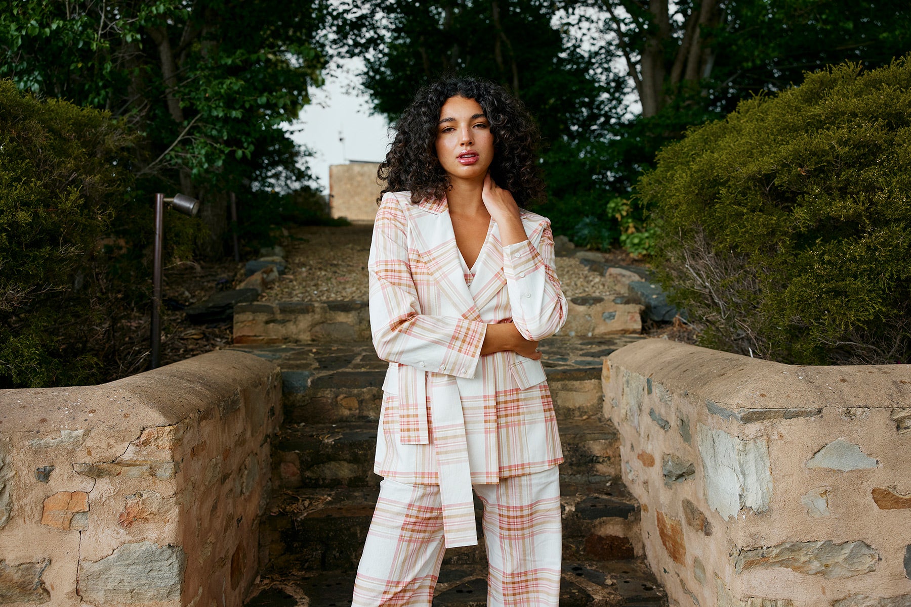 Style with Aston Studio's matching Harper Pants to create a coveted suit.