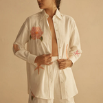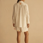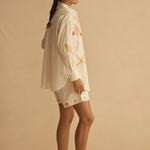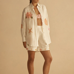 Luxe, airy and light, the Long Sleeve Shirt with handcrafted sea-inspired embroidered motifs features a button through front, collared neckline and long cuffed sleeves. Style with matching Pleated Mid Length Short, ALCIO Pleated Wide Leg Pant or wear open over this season’s favourite swim.