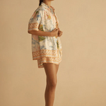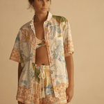 Effortlessly embracing sophisticated minimalism. The Short Sleeve Shirt is a relaxed boxy fit and features a collared v neckline, button through front and cuffed short sleeves. Wear it unbuttoned over your swimsuit or style with coordinating Drawstring Short for a chic resort look.