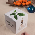 The Avocado Vase (15cm x 15cm) is made from borosilicate glass. The vase includes a 36-page handbook, which thoughtfully guides the user with detailed steps for germinating the seed and growing the avocado plant. The handbook contains useful tips and advice on the subjects of water, light, pruning and repotting. As well as historical references and artistic inspirations. The packaging is printed on recycled card.