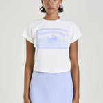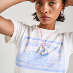 A classic white Baby Doll Tee elevated by the Summi Summi Fortune Teller Fish.