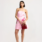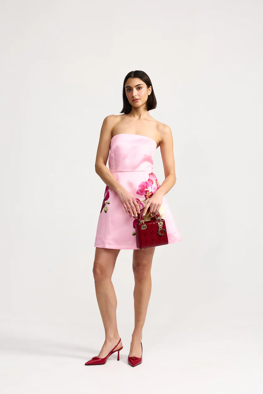 The Beatrix Dress Icing Phalae is a mini dress beautifully adorned with a hand crafted phalae print. The Beatrix combines a fitted bodice with a structured A-line skirt, offering a silhouette that is both refined and relaxed.