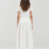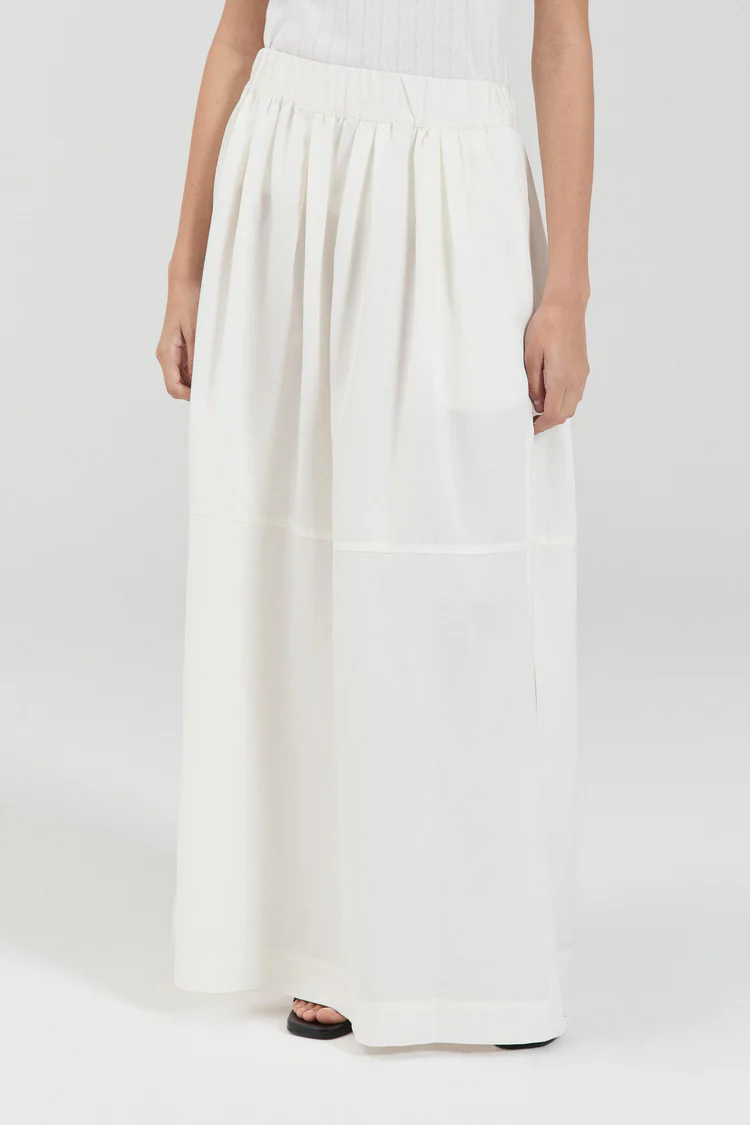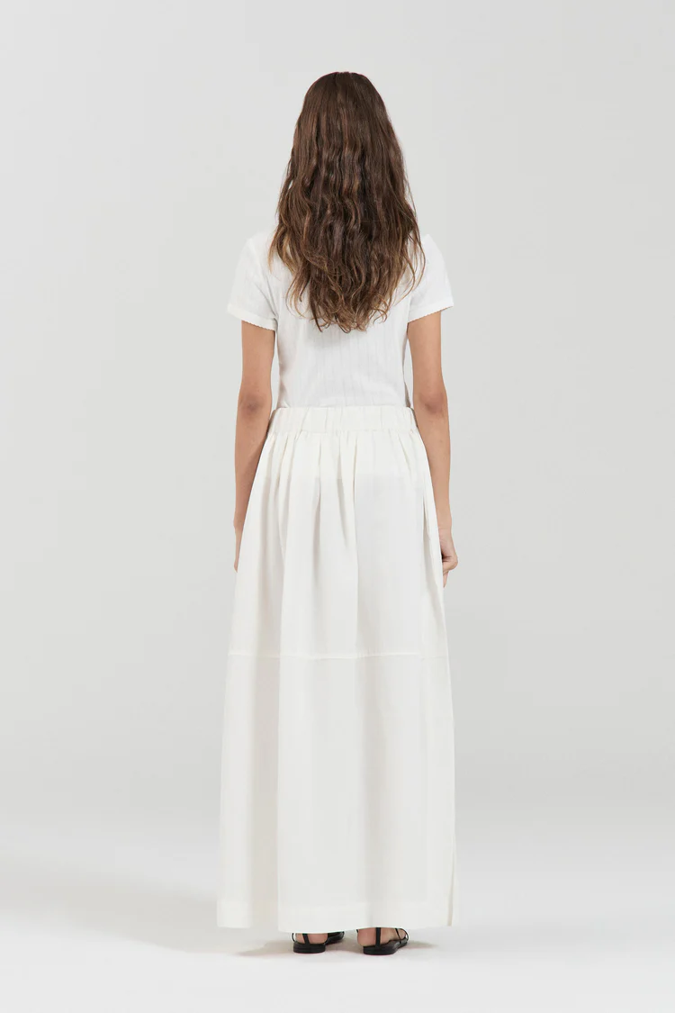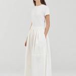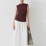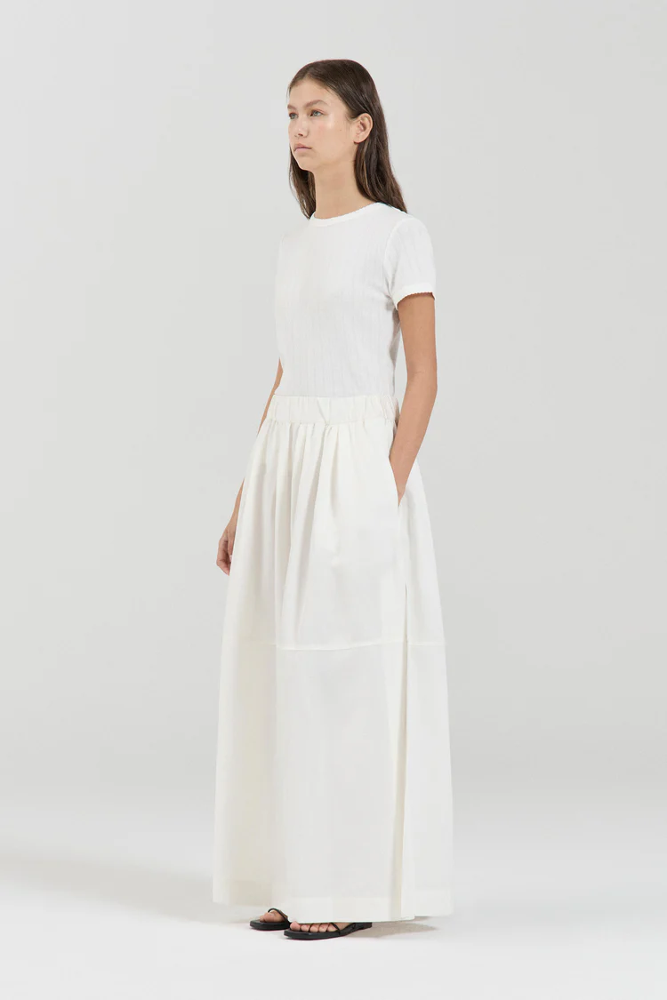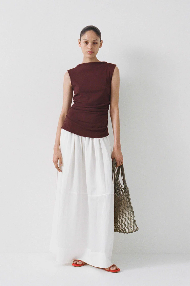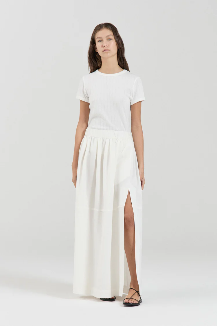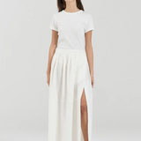 A casual everyday skirt, featuring side seam splits, ruched detailing, pockets and a thick 5cm waistband