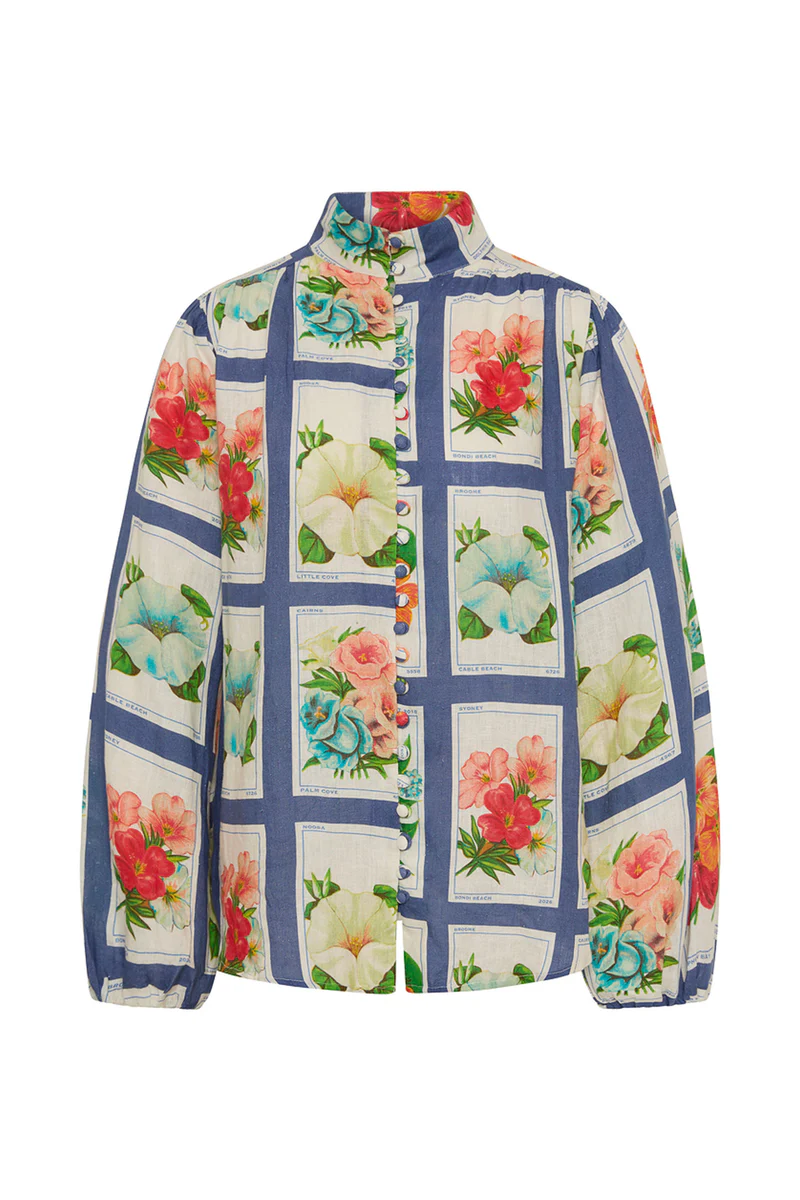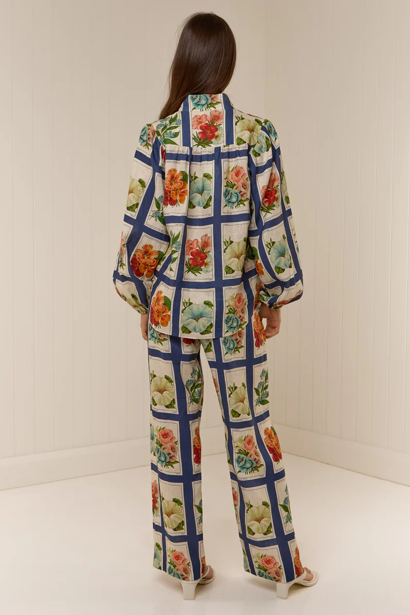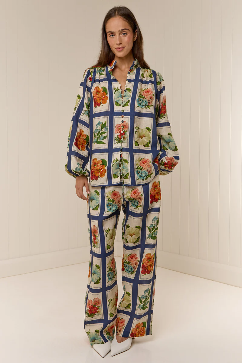 The Bella Blouse is crafted from a premium light linen, printed in our exclusive Vintage Botanical print. Fitted across the shoulders with a relaxed silhouette through the body, The Bella Blouse has balloon style sleeves that gather at the wrist, and centre front button detailing.