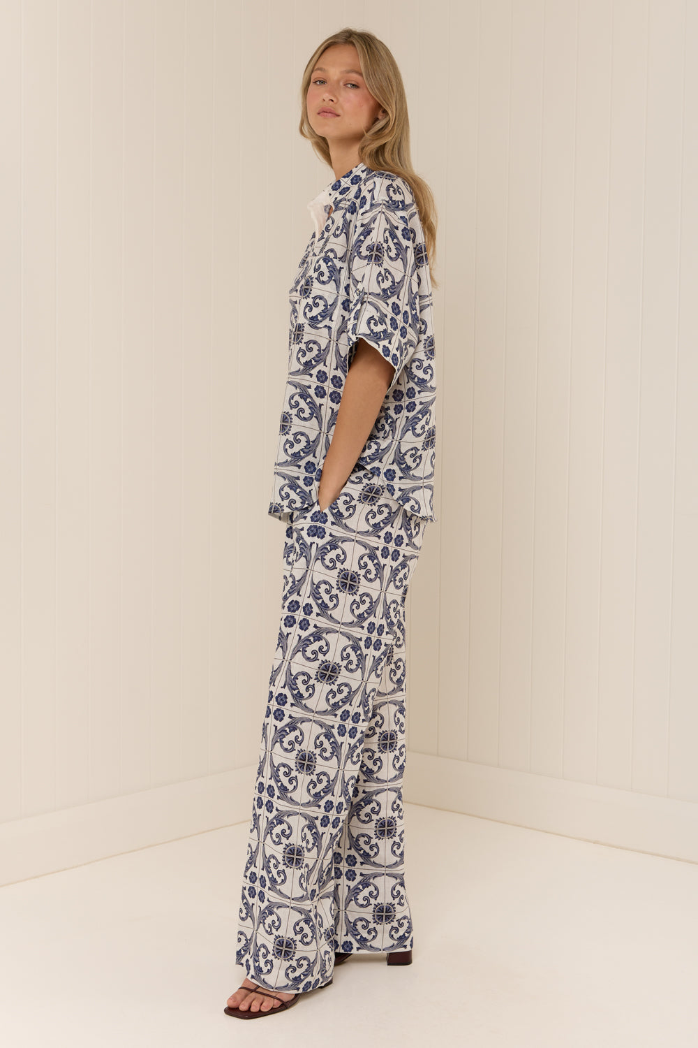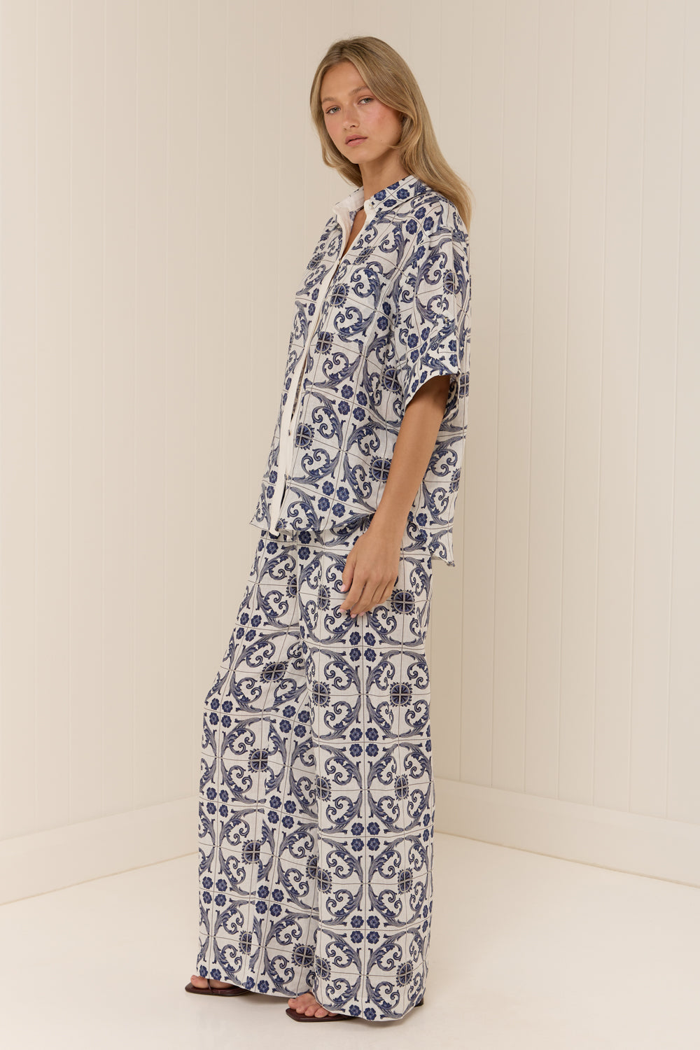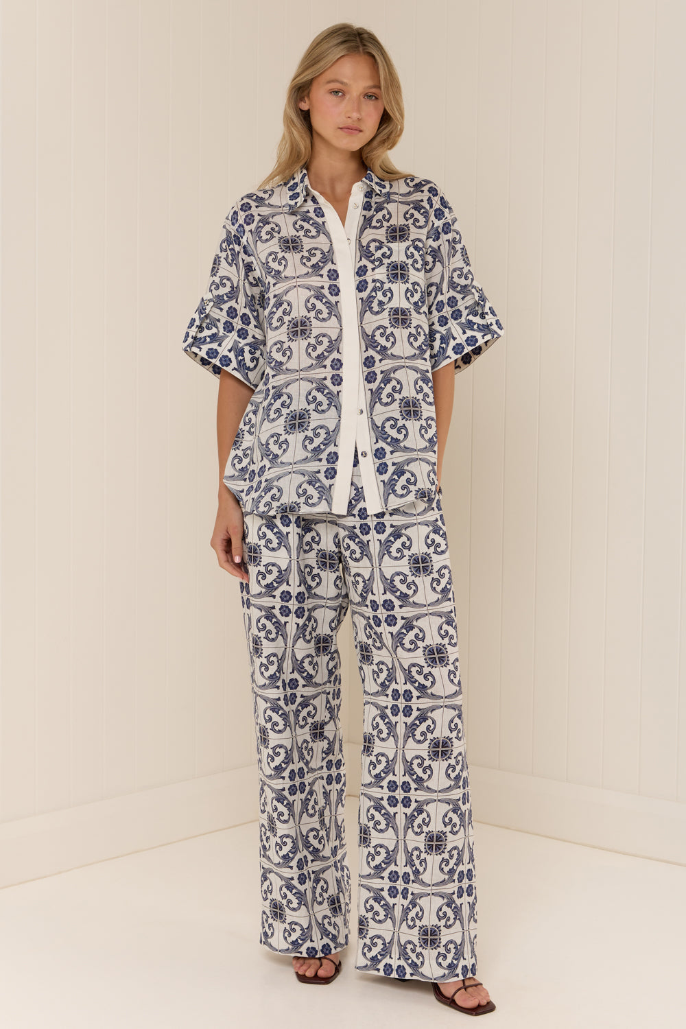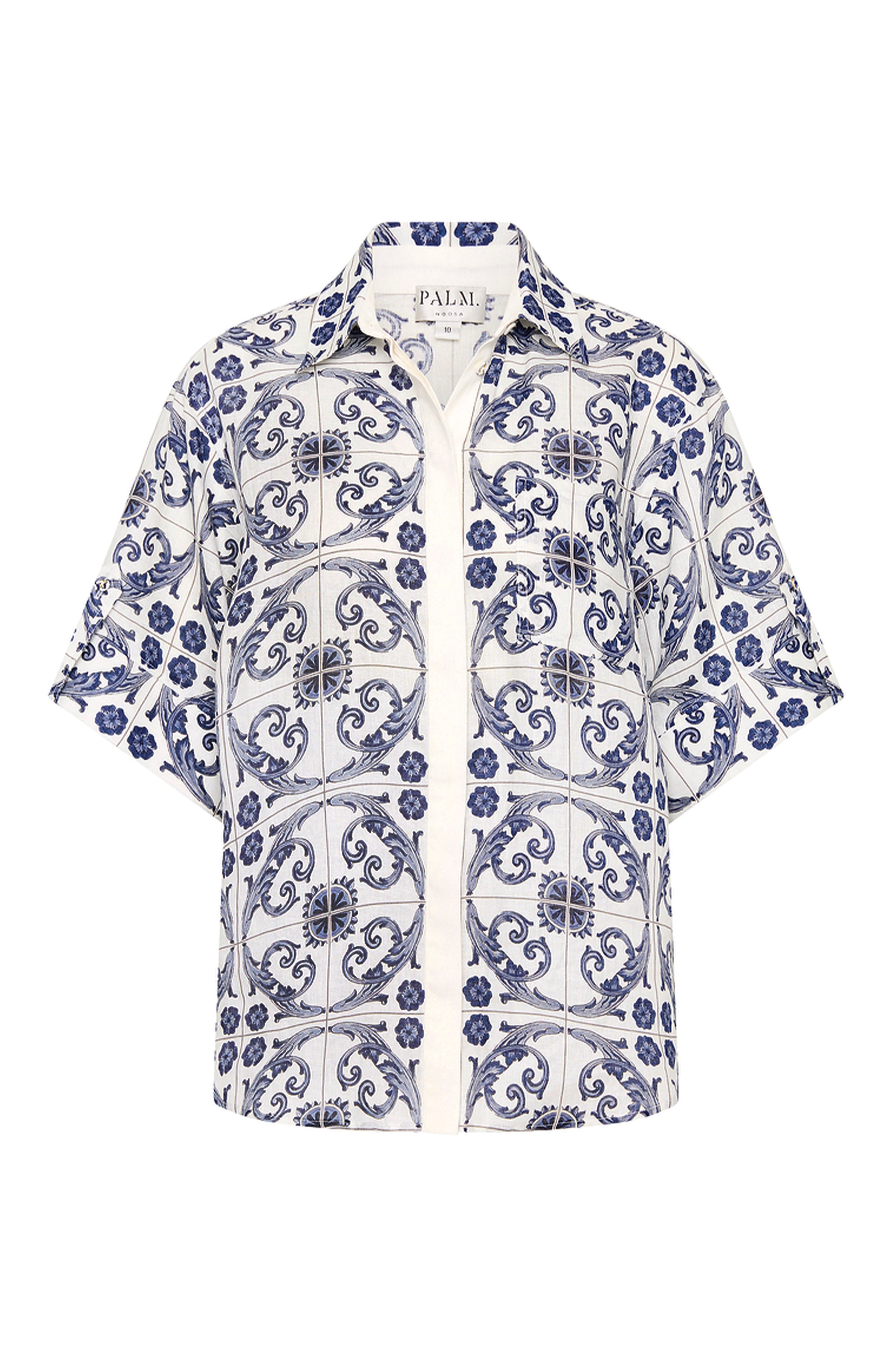 The Bella Tile Shirt in our exclusive Bella Tile is crafted in a premium linen. The Bella Tile Shirt is designed to be a relaxed fit, featuring cuffed sleeves, concealed centre front buttons and a classic shirt collar.