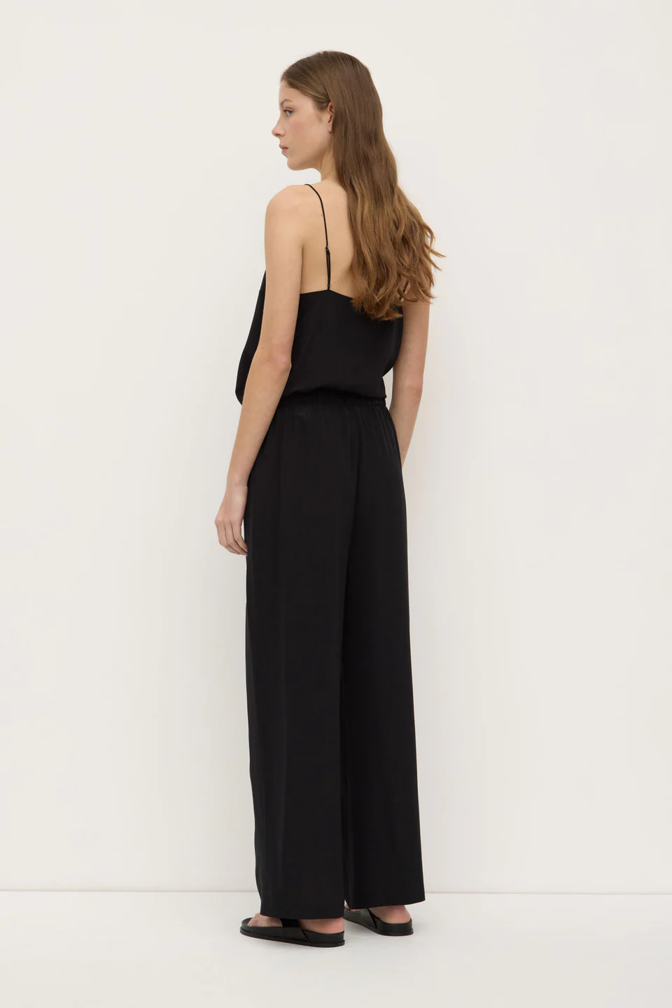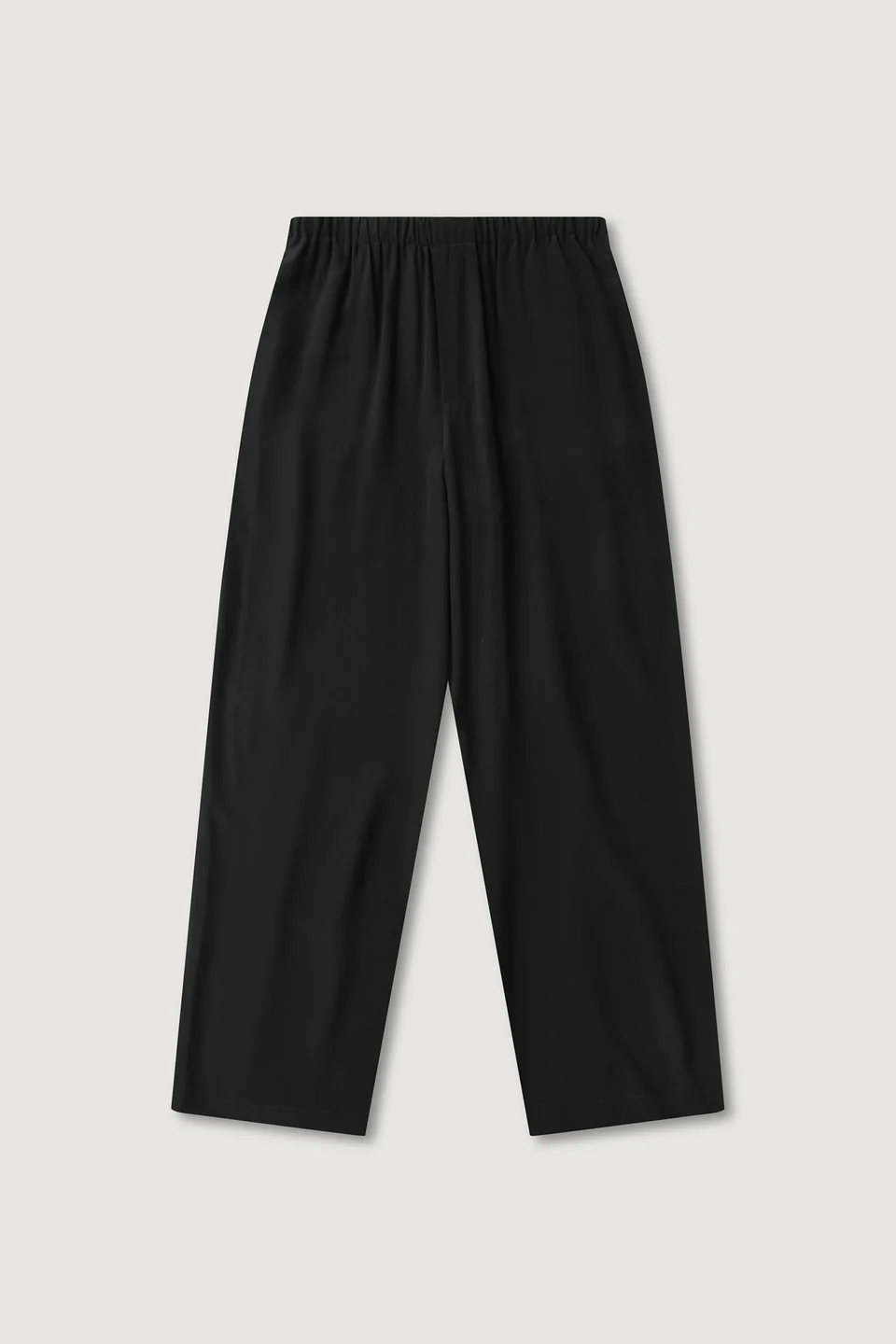 Relaxed, straight leg pant crafted from a lightweight silk. Features side pockets and an elasticated waistband for added comfort and ease.