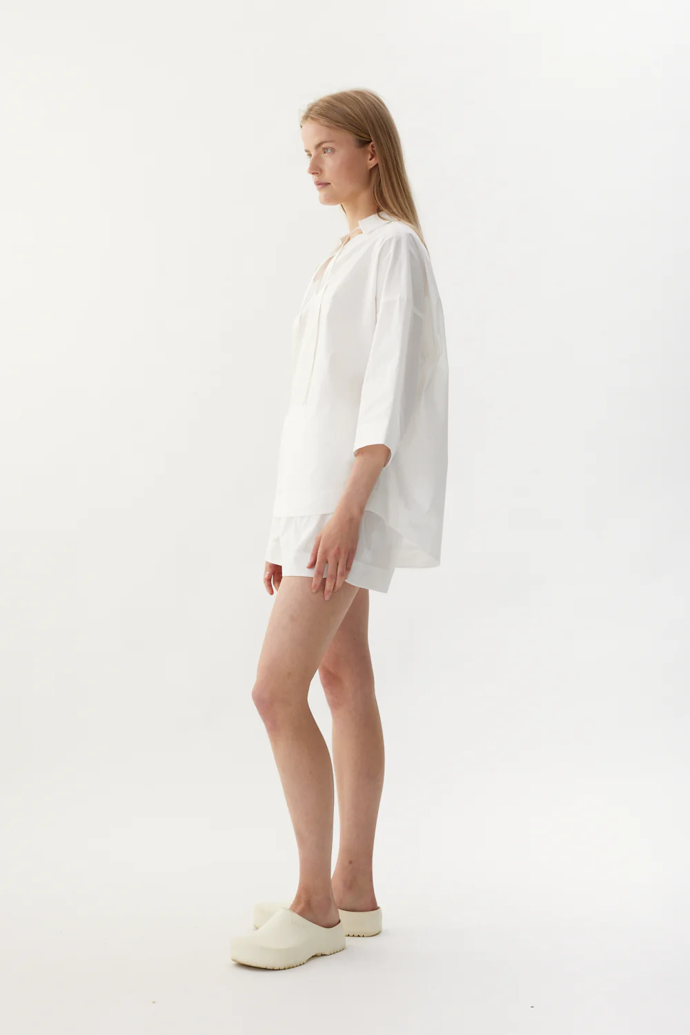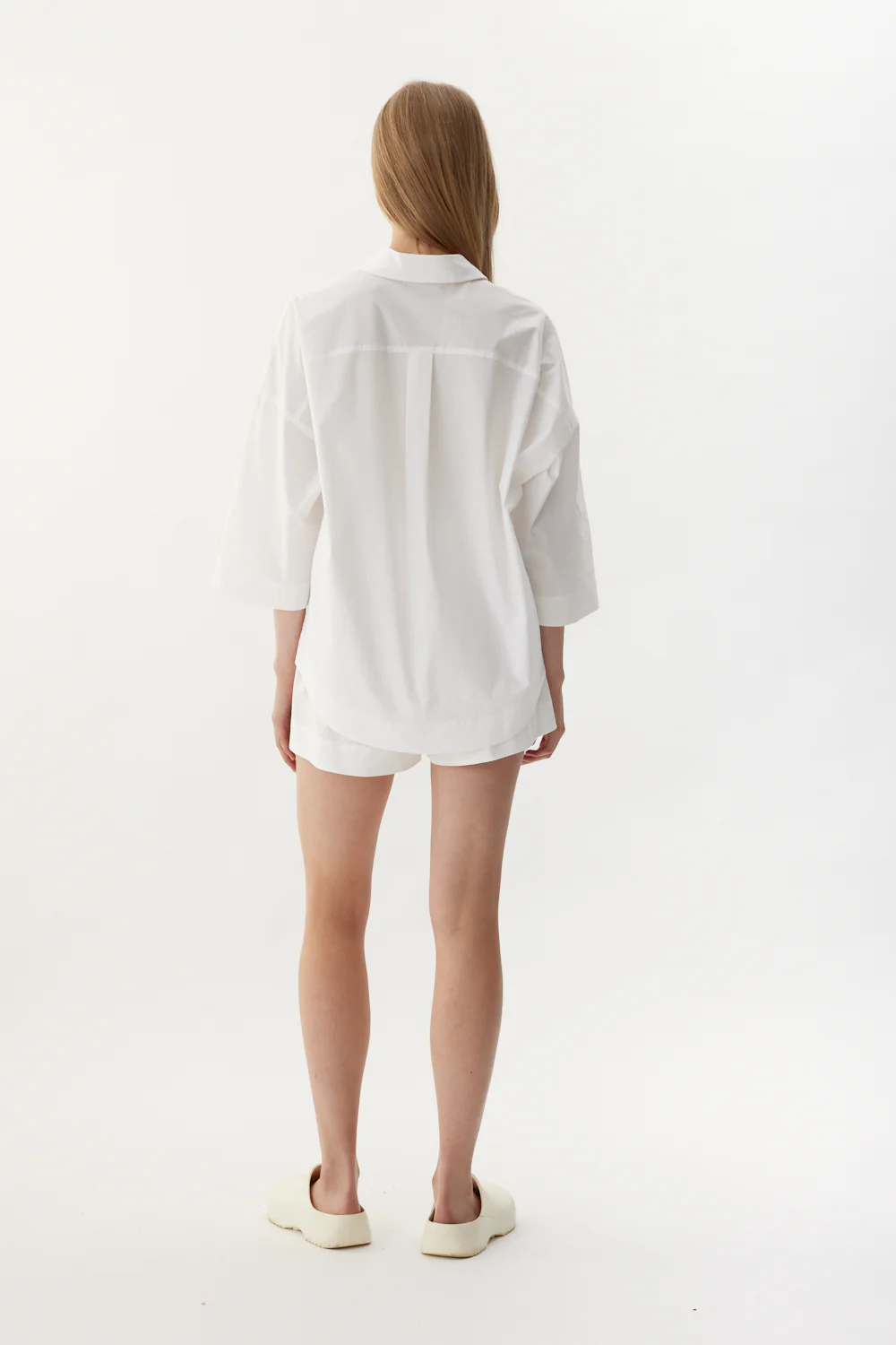 Crafted from lightweight, breathable 100% cotton, the Billie Shirt is a timeless staple, perfect for warm days and easy layering. With its oversized fit and signature drop shoulders, this shirt delivers a relaxed yet polished look that works seamlessly from casual to elevated. The crisp white hue adds a versatile edge, making it a must-have in any wardrobe.