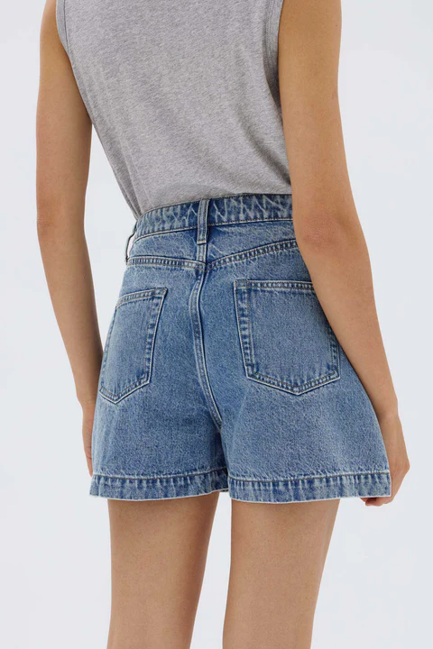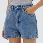The Boxy Denim Short is designed for classic everyday wear. A high-rise denim short that tapers at the waist and have a wider, boxy fit through the leg.