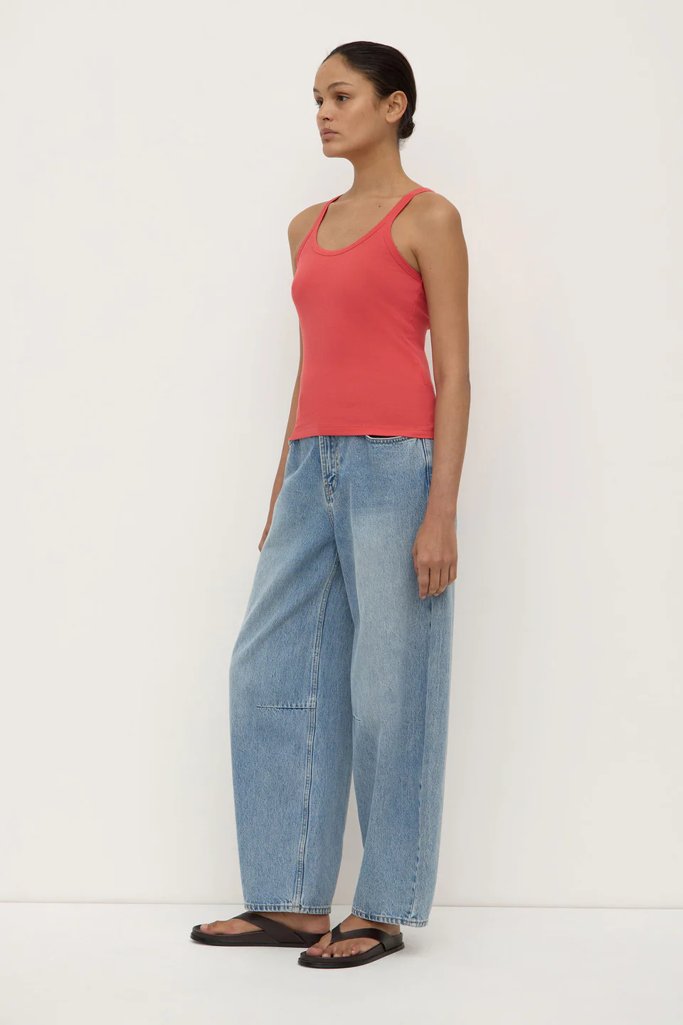 A layering essential. This slimline tank is crafted from a soft cotton jersey with subtle stretch and features a flattering scoop neckline.