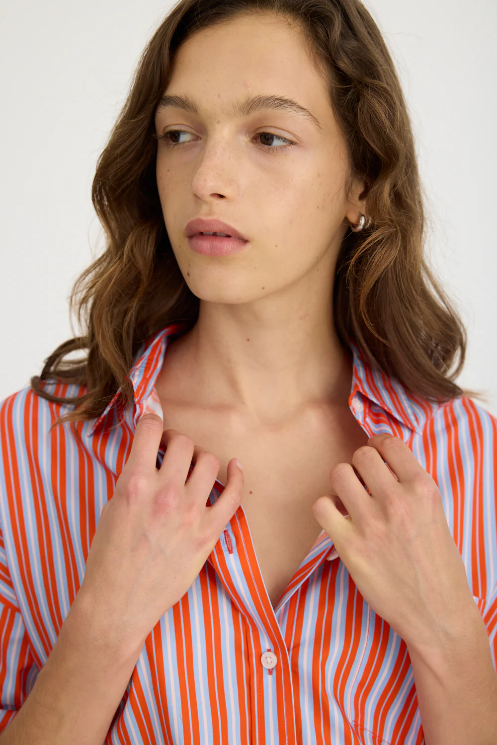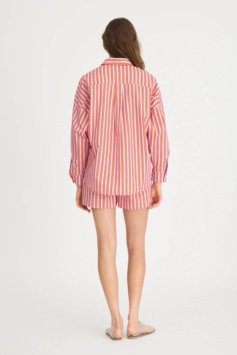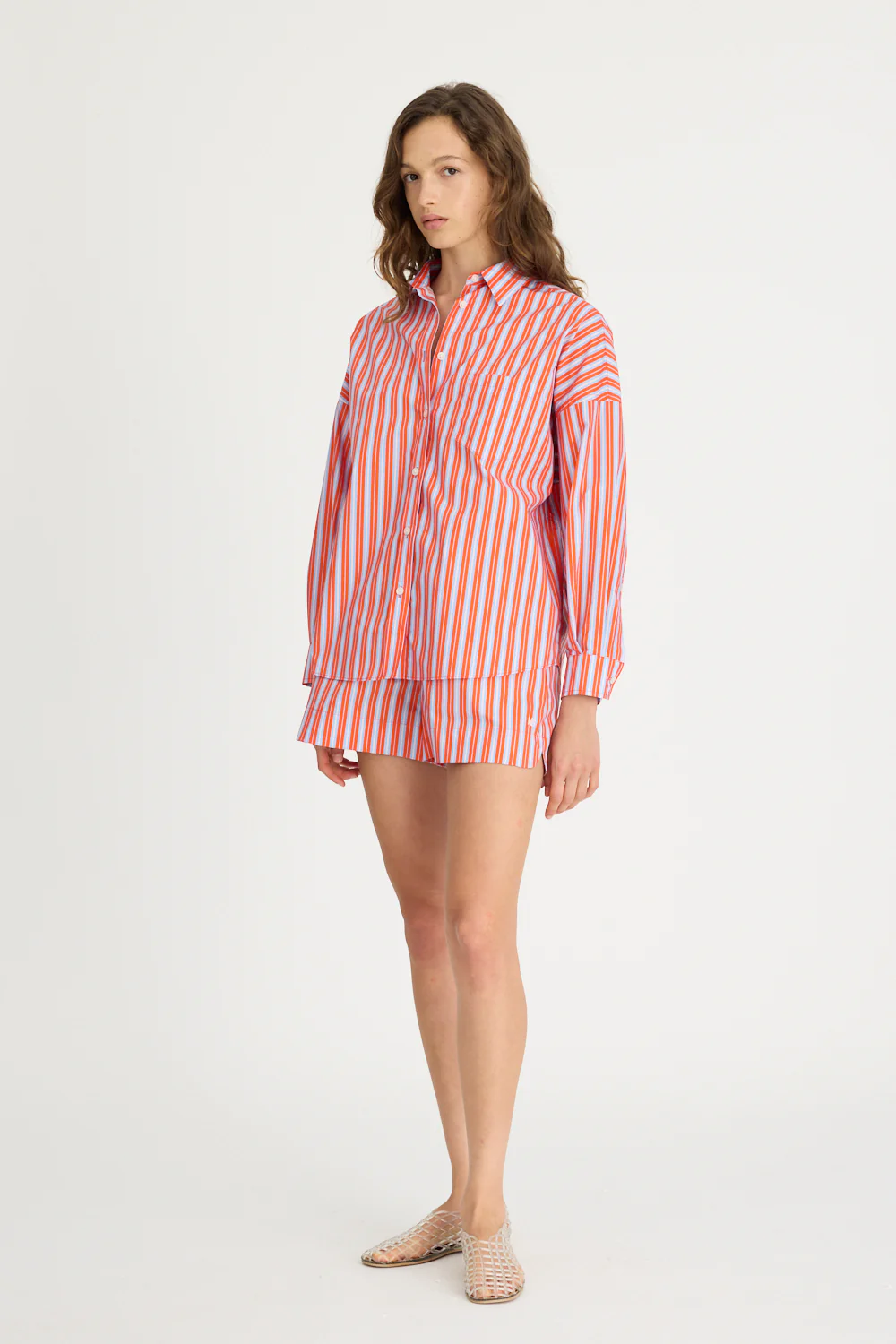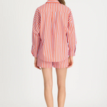 Introducing our Signature Classic Button-Up Shirt, featuring a stripe detail. Expertly crafted from 100% yarn-dyed cotton, this shirt effortlessly combines style and comfort. The design includes a practical chest pocket and our signature drop shoulders, creating a slightly loose silhouette perfect for layering under cozy knitwear or pairing with your favourite Chiara shorts.