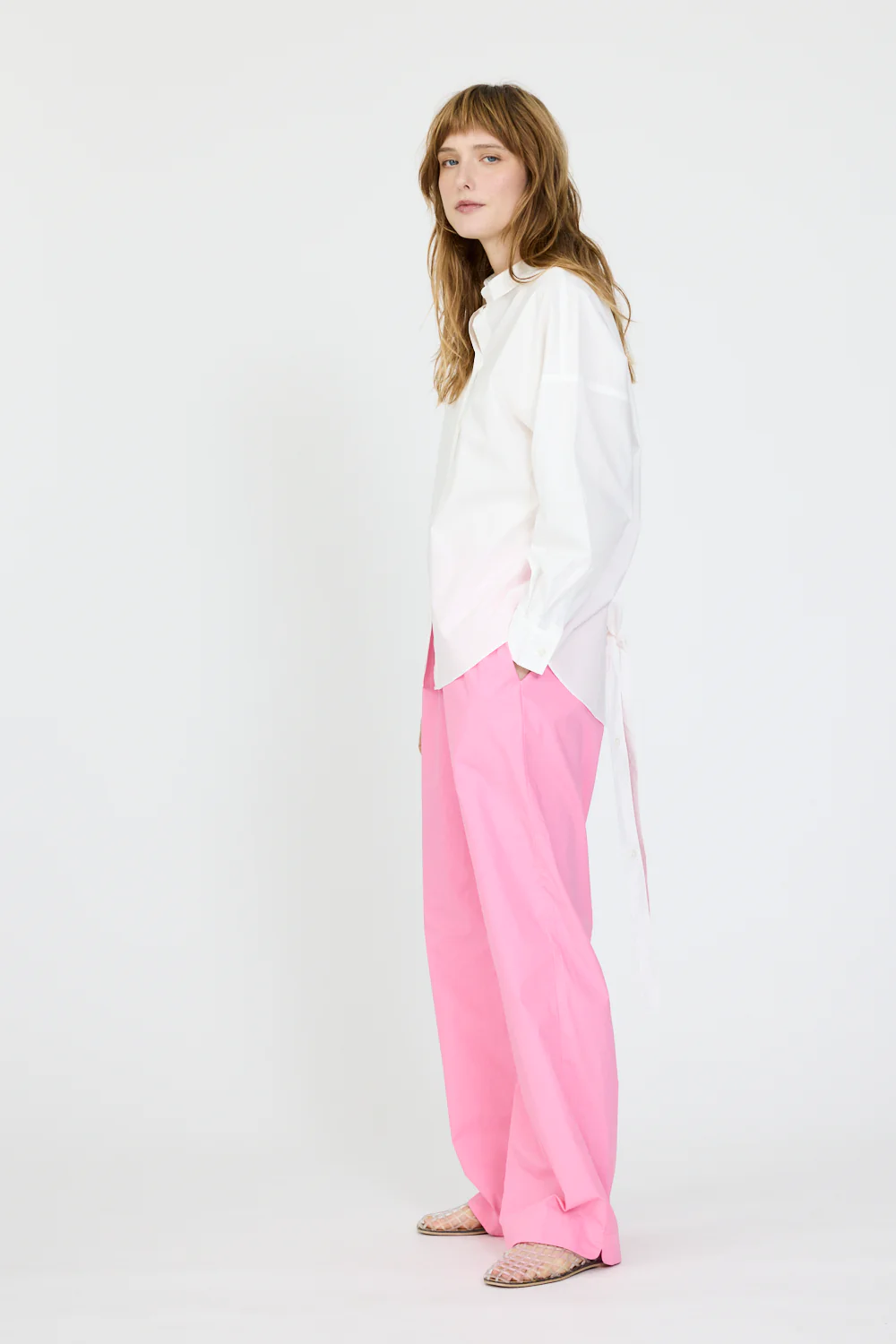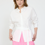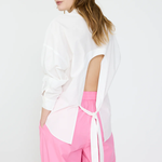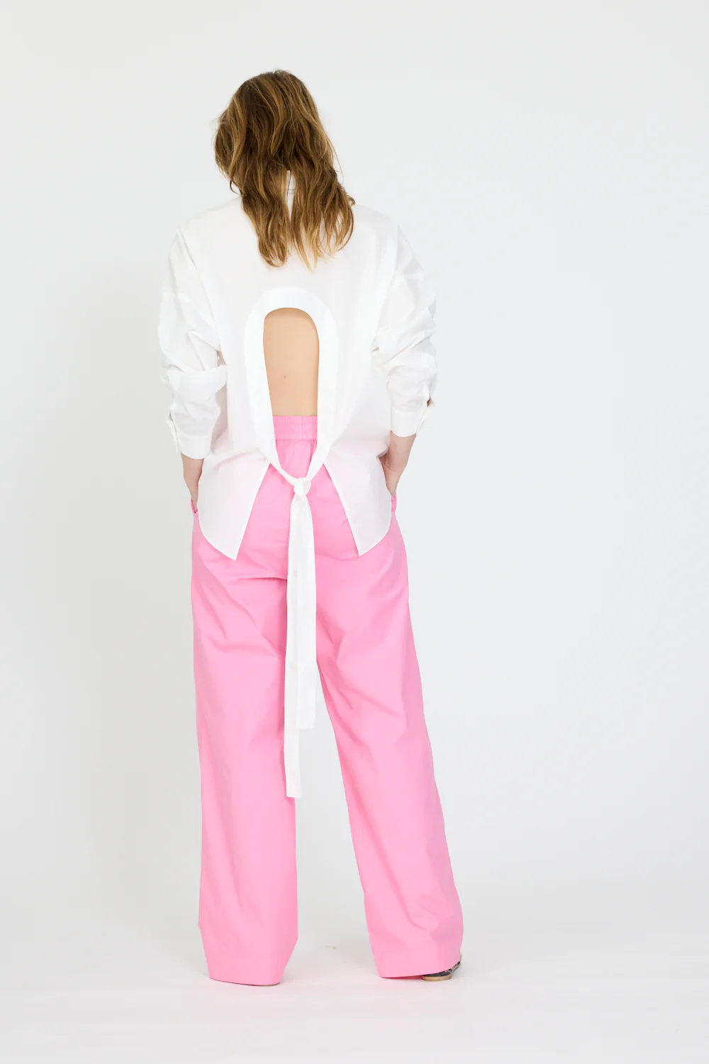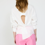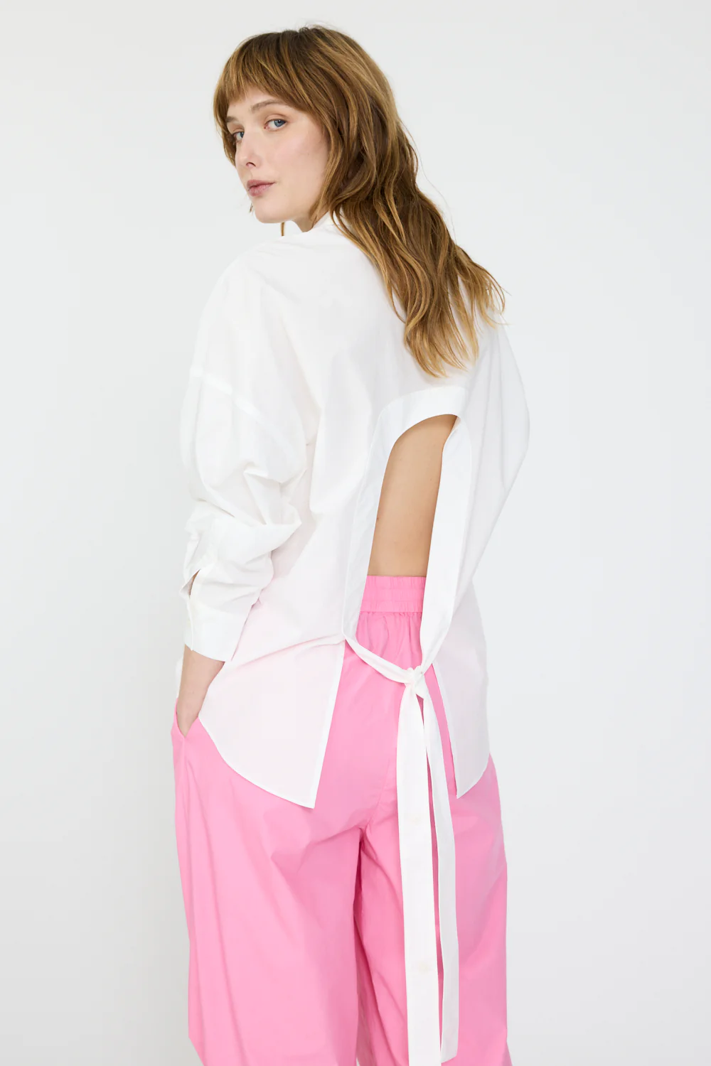 All the effortless ease of LMND's signature Chiara Shirt, with an unexpected twist. The Chiara Backless Shirt features the same crisp silhouette and lightweight cotton poplin you know and love, now updated with an open back and adjustable tie detail. Designed to be styled your way, layered, tucked, or worn solo, it’s a statement piece that still feels classic.