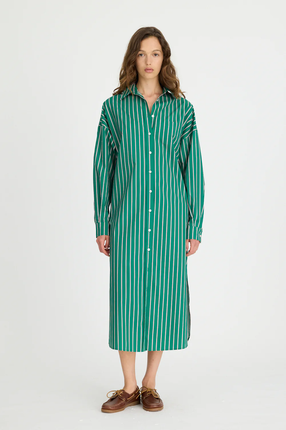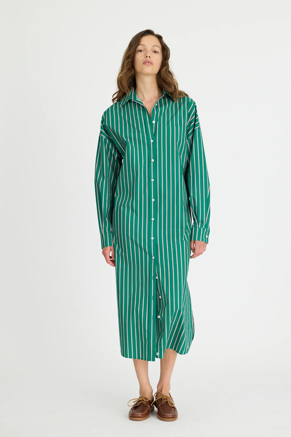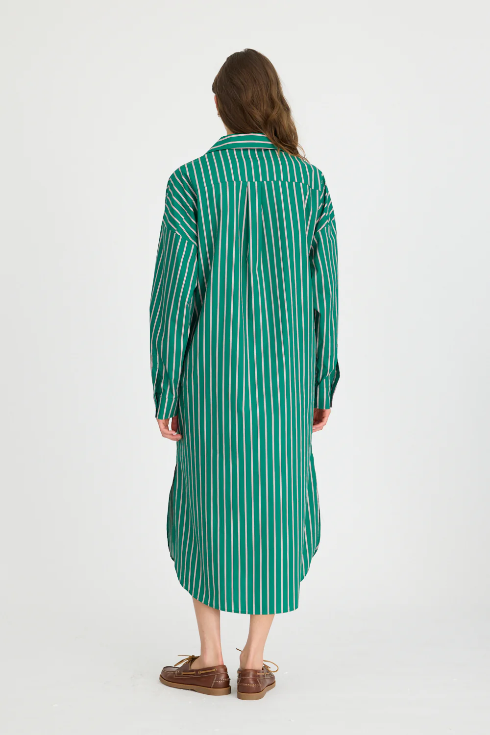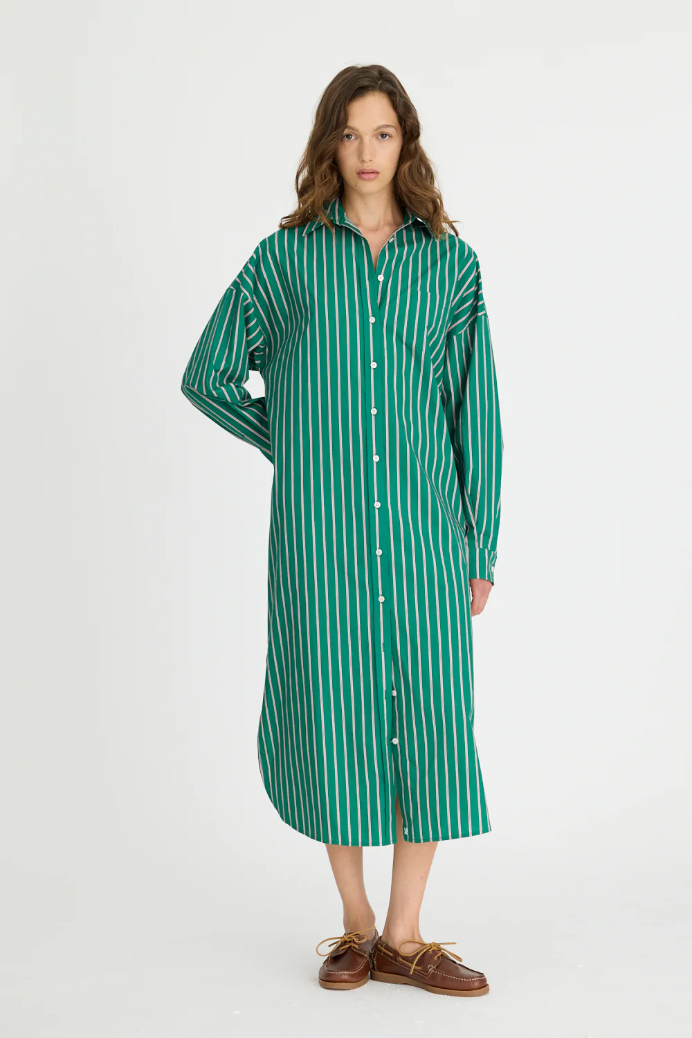 Discover the upgraded Chiara Maxi Shirt Dress, now featuring extra length. Crafted from 100% Cotton poplin and garment-dyed, this dress boasts a classic rounded hem. Its oversized fit offers versatility, whether you leave it unbuttoned over pants, matching shorts, or your favourite swimsuit. Upgrade your style effortlessly with this wardrobe essential.