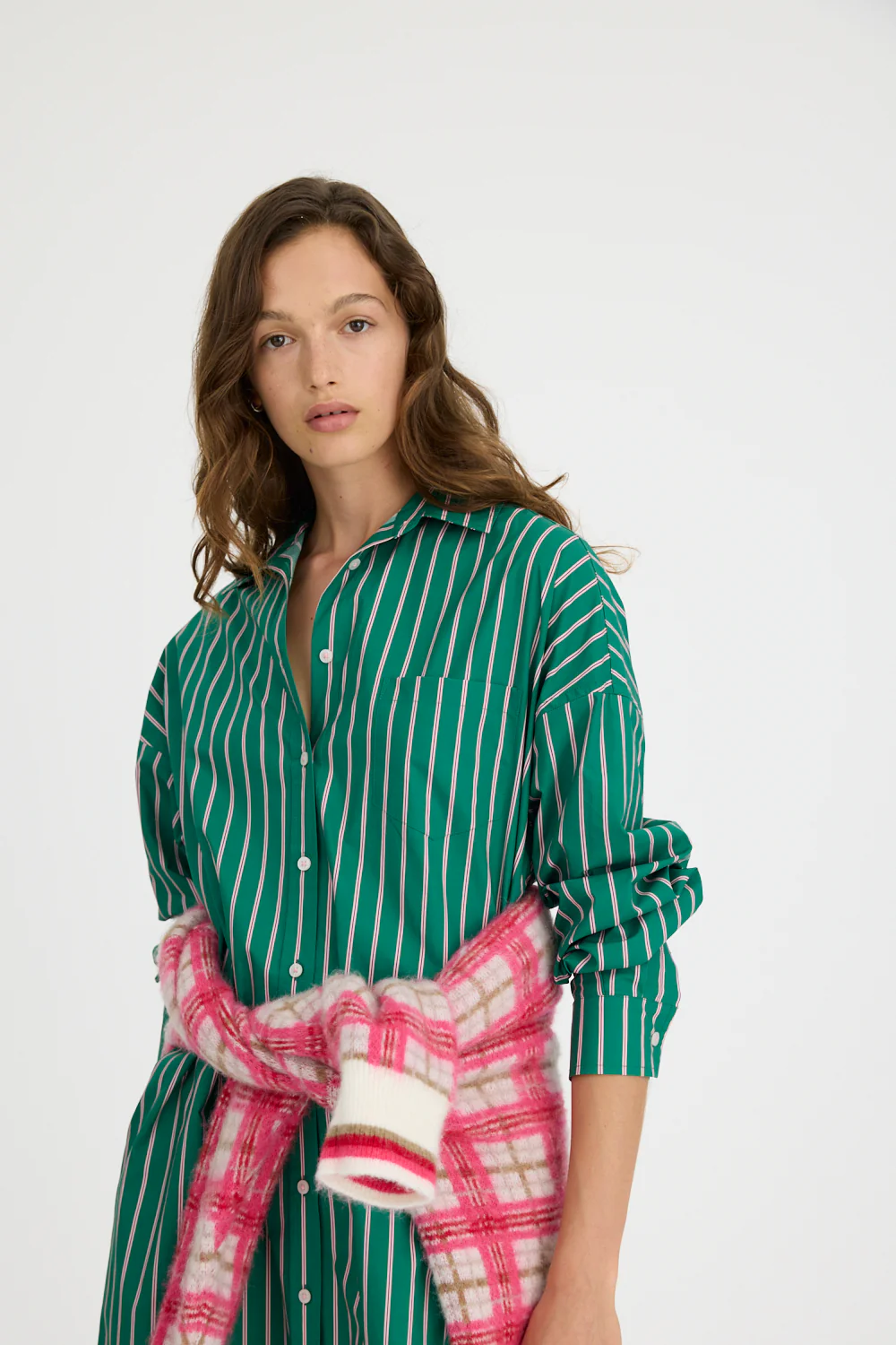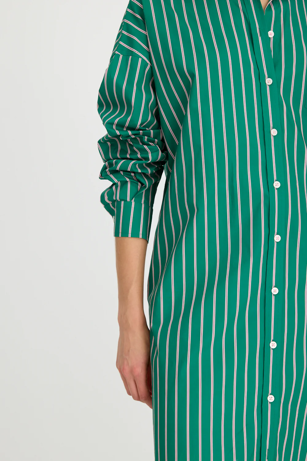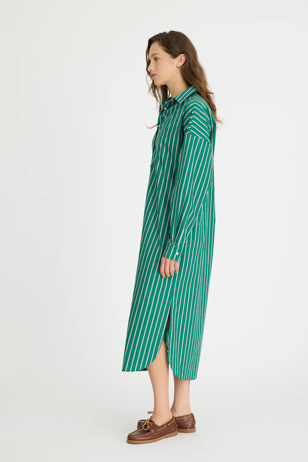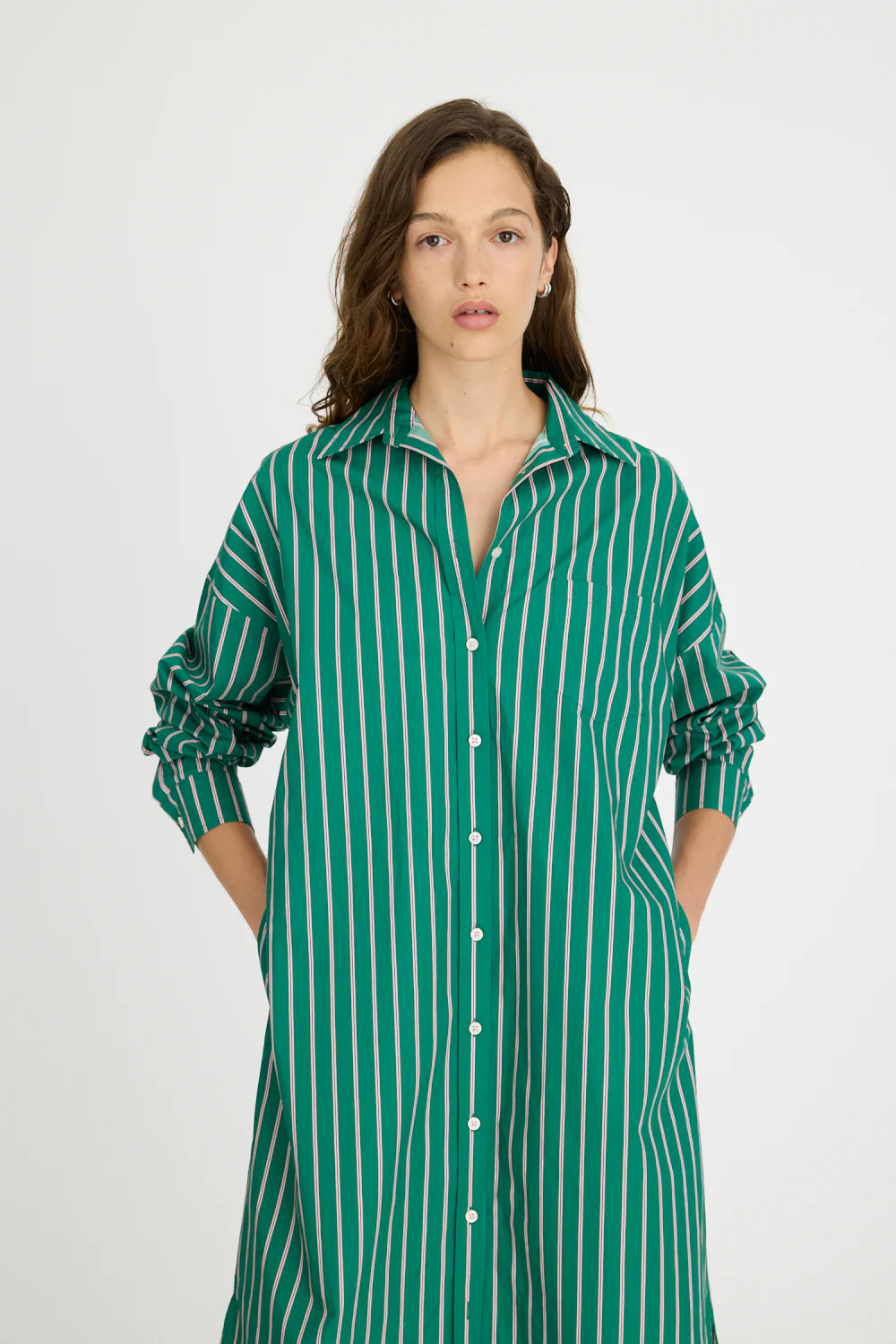 Discover the upgraded Chiara Maxi Shirt Dress, now featuring extra length. Crafted from 100% Cotton poplin and garment-dyed, this dress boasts a classic rounded hem. Its oversized fit offers versatility, whether you leave it unbuttoned over pants, matching shorts, or your favourite swimsuit. Upgrade your style effortlessly with this wardrobe essential.