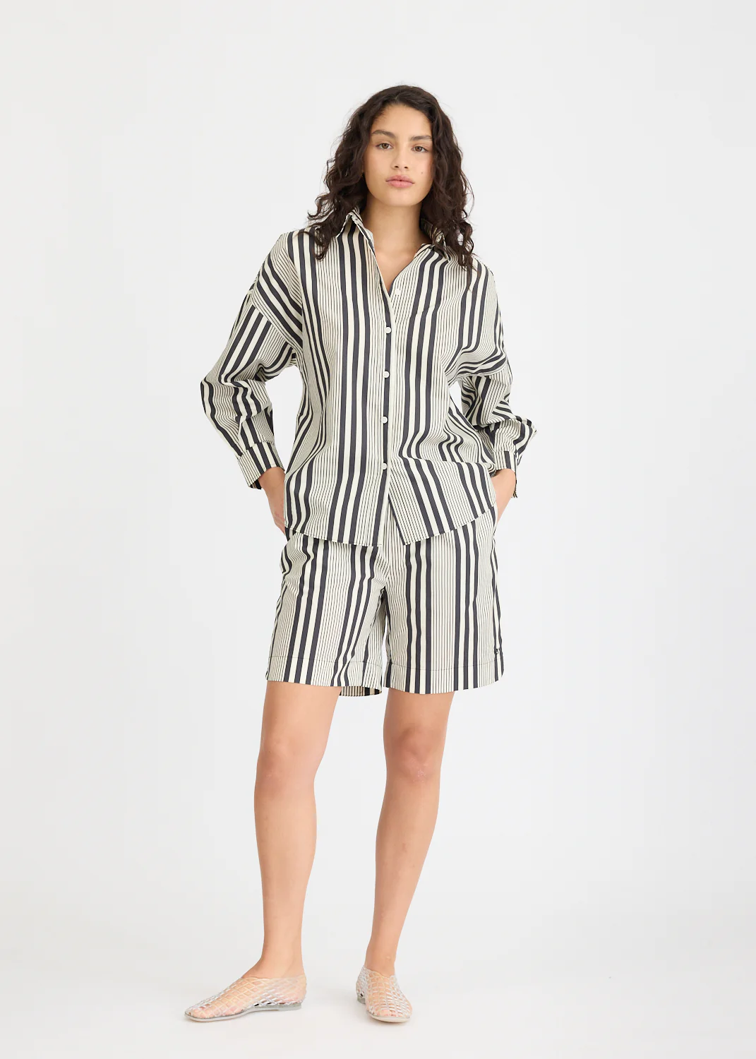 Pair them with a basic tee for a laid-back look or with the matching Chiara shirt. With their effortless design and high-quality fabric, the Chiara Shorts are a must-have addition to your collection.
