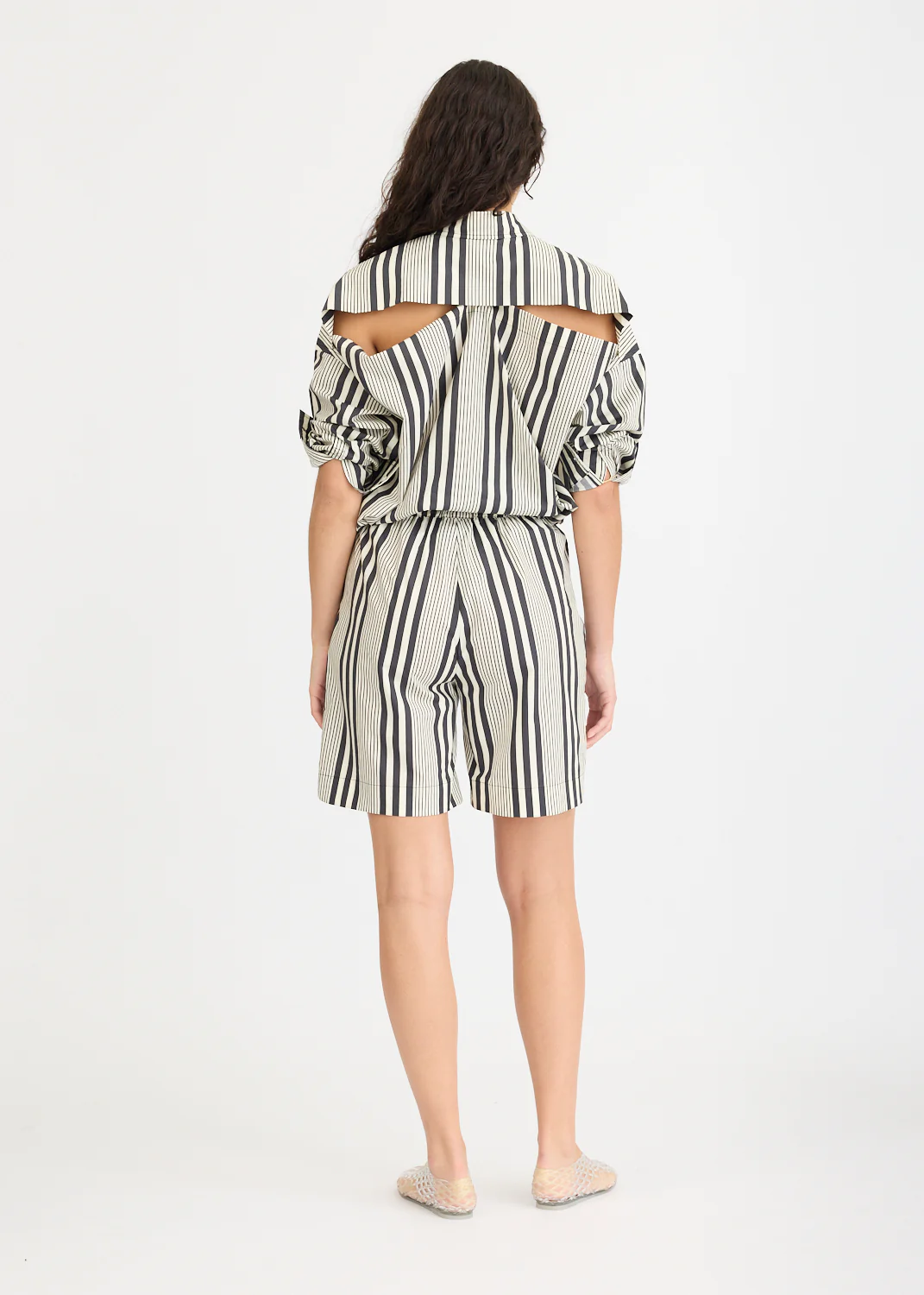 Chiara Mid Length Shorts - Black and White Stripe