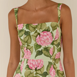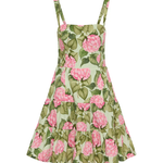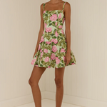 The Cooper Dress is crafted from a premium Cotton Poplin with our exclusive Pink Jardin print. This mini silhouette is fitted through the body and falls into a full tiered skirt for a flattering and feminine shape. Lightly padded straps frame the shoulders and add an elevated and refined finish. Please refer to our size and fit guide for further fit details.