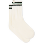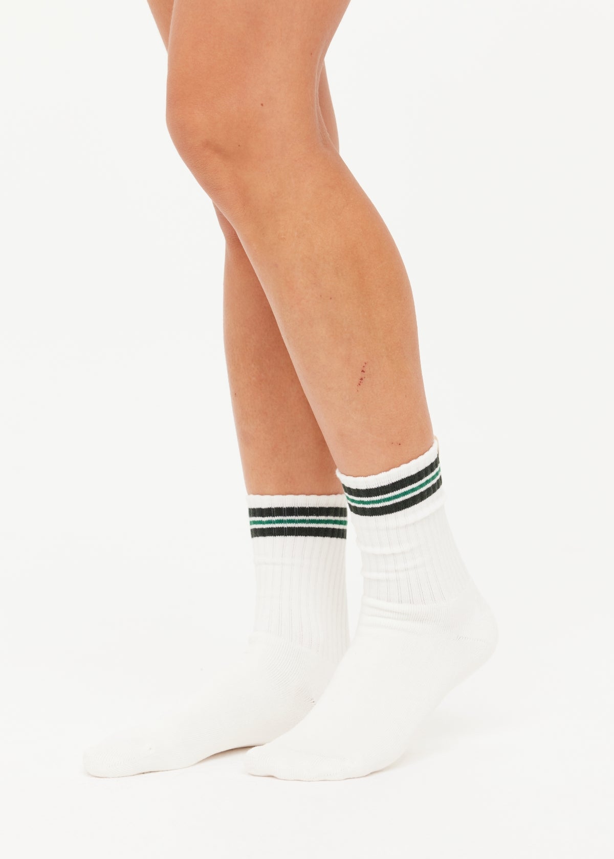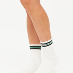 Cream crew sock with green jacquard stripes, a playful nod to classic court style