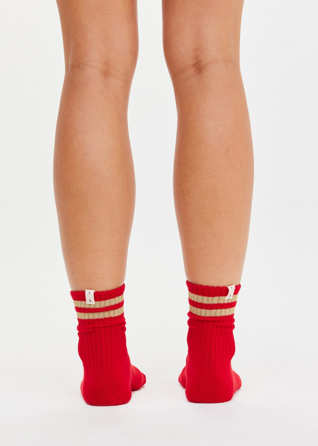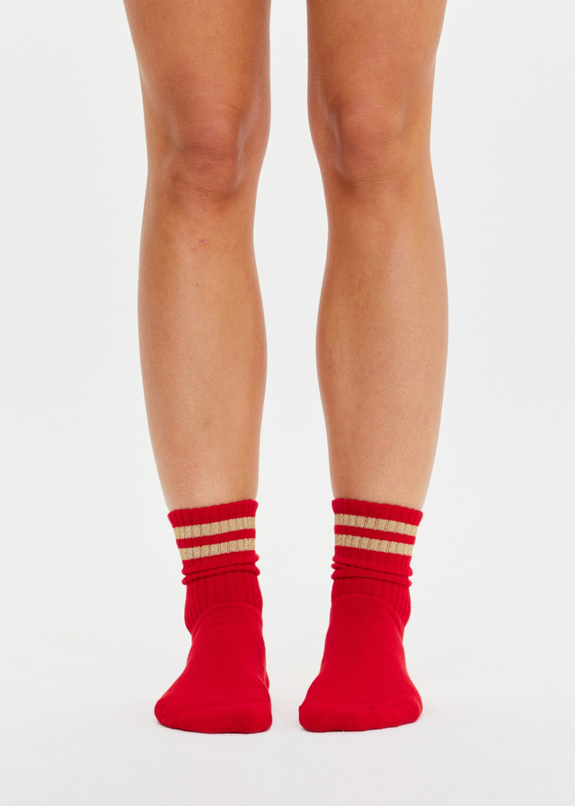 - Crew sock in cherry red