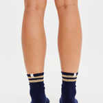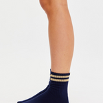 Everyday ease with a twist - the Curio Crew Sock in navy and gold