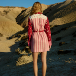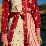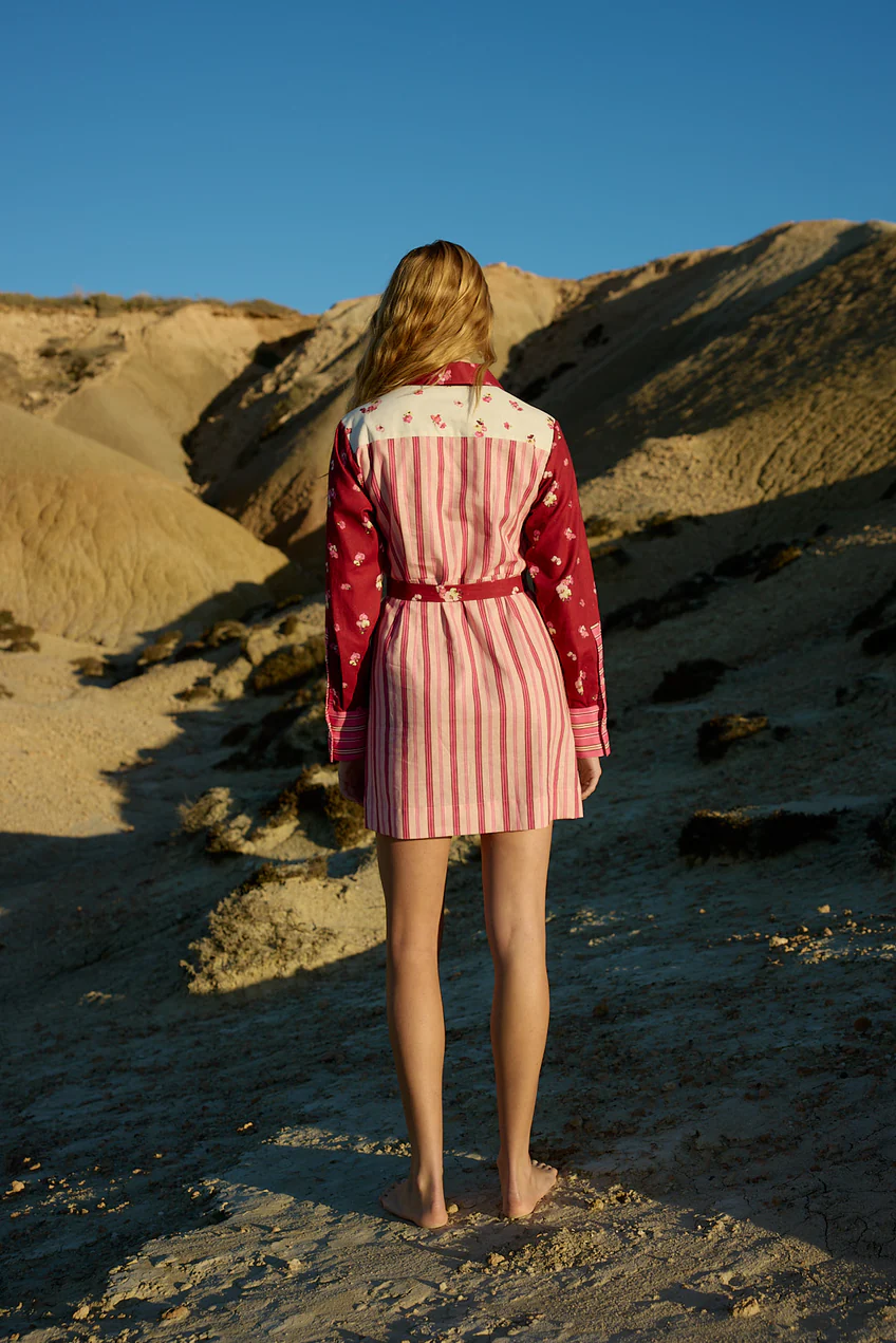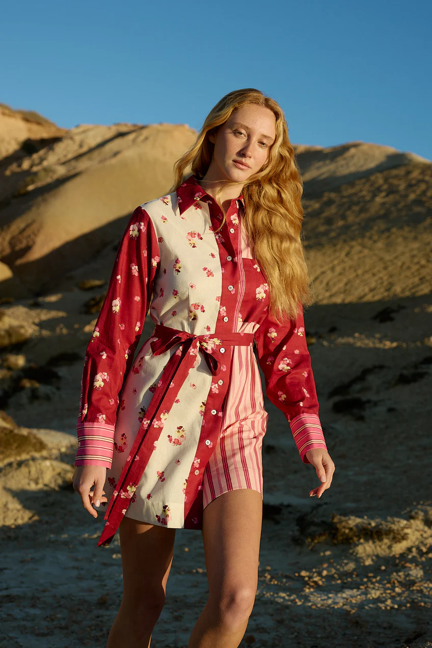 The Demi Dress is a mini shirtdress in our exclusive Redcurrant Multi print. Featuring a stripe and hand crafted phalae print, the Demi is playful and easy to wear.