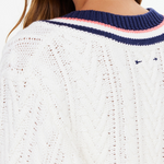 - Chunky V neck cable knit sweater in cream