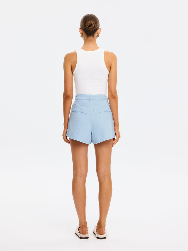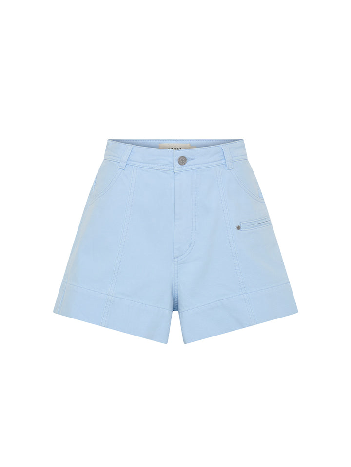 The Evie Denim Short in sky blue is an A-line short featuring Jett pockets, back panel detailing and signature hardware. Cut for a flattering, easy-wearing shape, it’s a relaxed wardrobe staple for warm-weather days. Pair with a simple tank or cotton shirt for effortless daytime ease, or style with a cropped knit or statement top to elevate the look