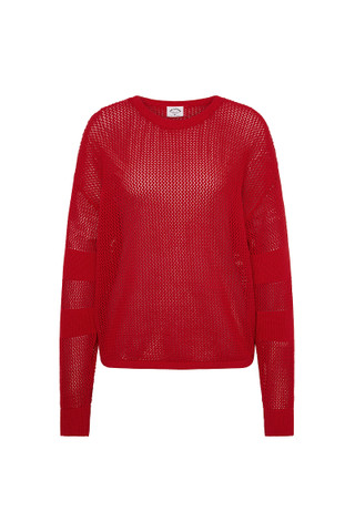 - Knitted crew neck sweater in cherry