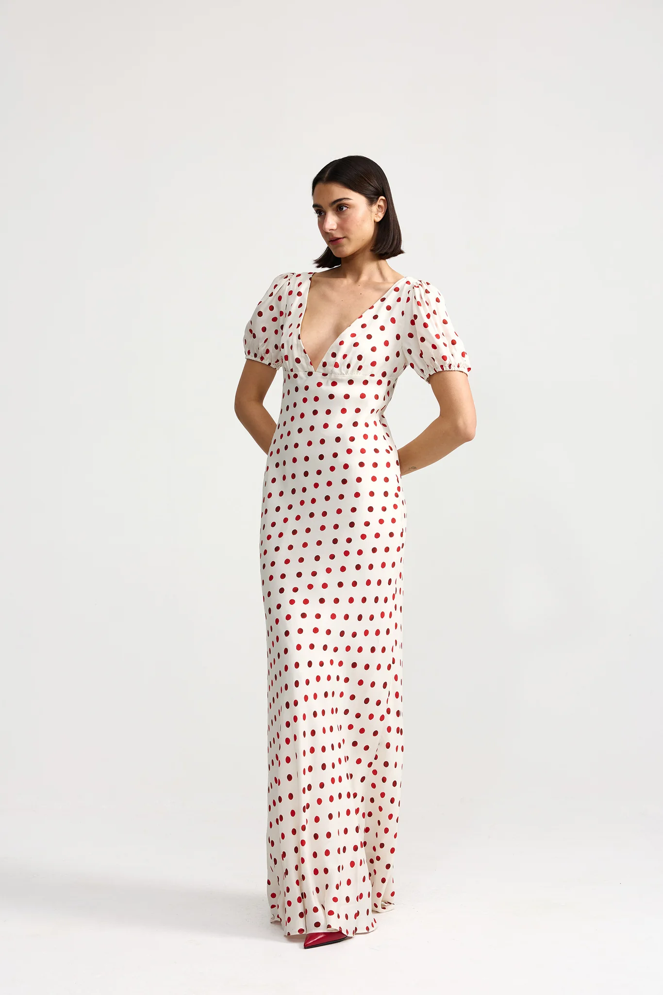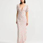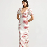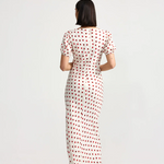 The Florence Dress Ruby Antique Dot is an effortless piece which blends vintage charm with a feminine silhouette. Cut on the bias, it skims the body and moves beautifully with every step, creating a flattering shape that feels both romantic and modern.