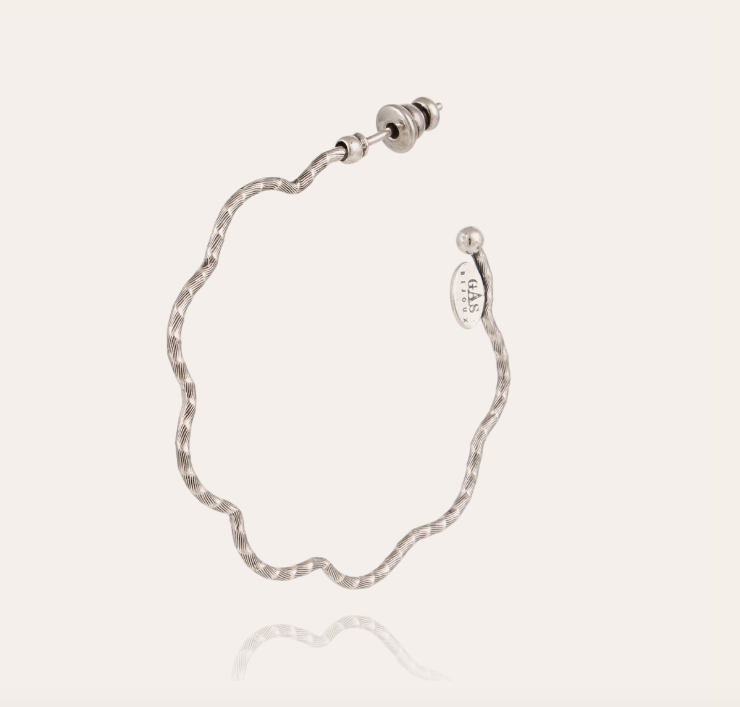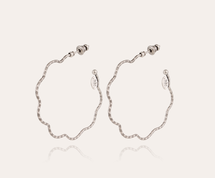 Delicate silver-plated creoles, sublimated by hand-crafted striations and hammering. Their refined design captures the light with elegance, adding a sophisticated touch to every outfit. Lightweight and timeless, they embody the excellence of Gas Bijoux savoir-faire for a chic, sublimated look on any occasion.