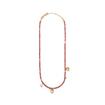 Infuse your style with a touch of boho chic with the Maroon Harmony Necklace. This enchanting piece channels the free-spirited vibes of the 70s, featuring precious gemstones, delicate charms, and freshwater pearls.