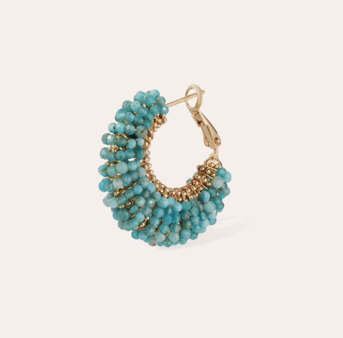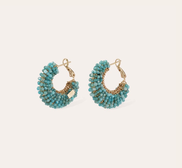 They feature a thread of coloured gemstones pearls that finely surrounds the entire structure of the earring. They are handmade in Gas Bijoux's Marseille workshop.