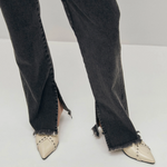 Part of our new denim drop, the Kansas is a pair of flared jeans with generous side slits and a raw hem. They feature a modern crossover waistband, as well as pockets on the front and back. For a slouchier, low-slung look, we recommend sizing up.