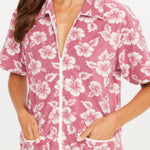- Organic cotton terry jacquard in our pink and cream Lahaina hibiscus