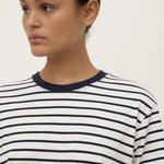 Relaxed fit cotton tee featuring a stripe design and contrast collar detail.