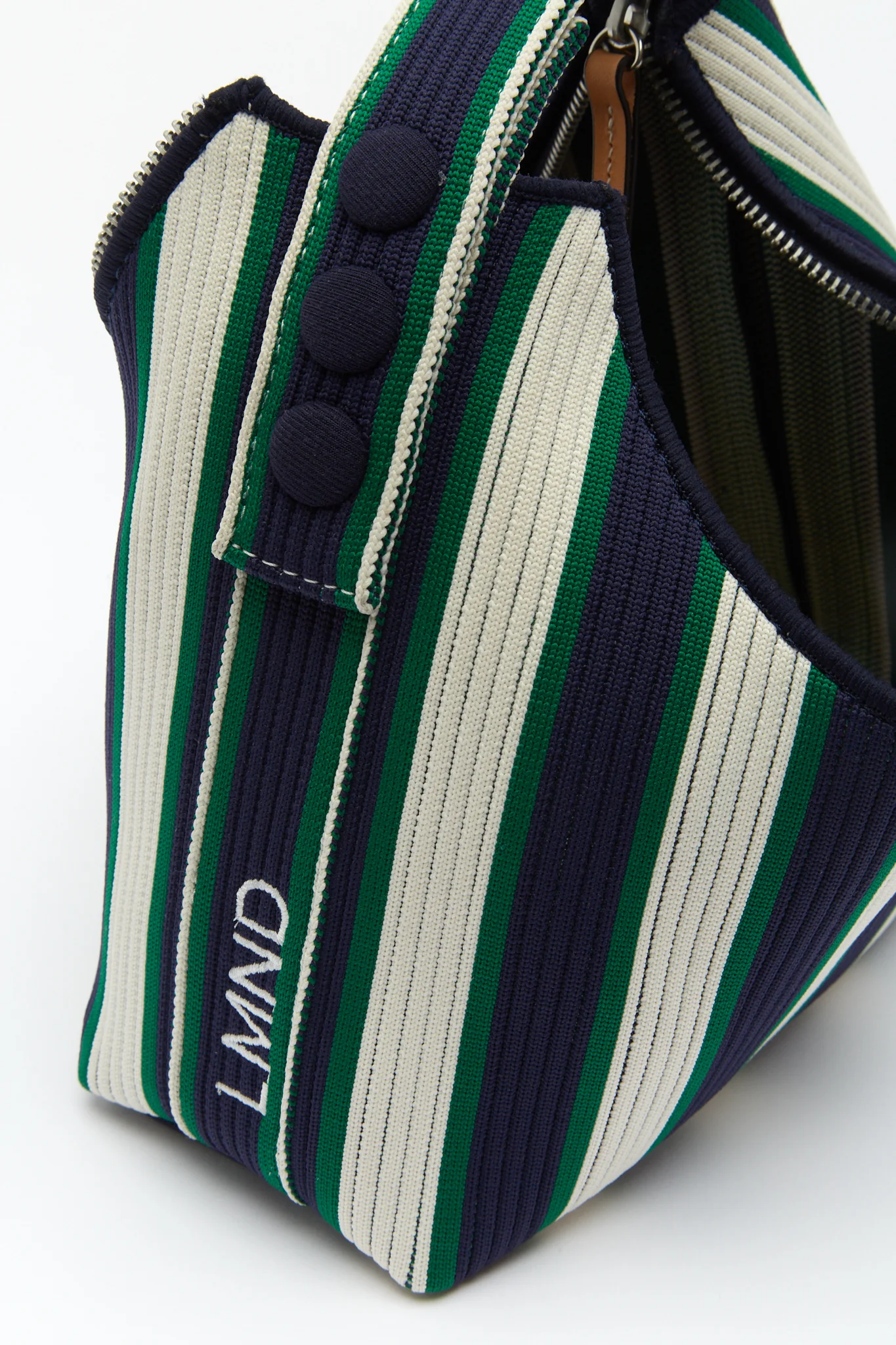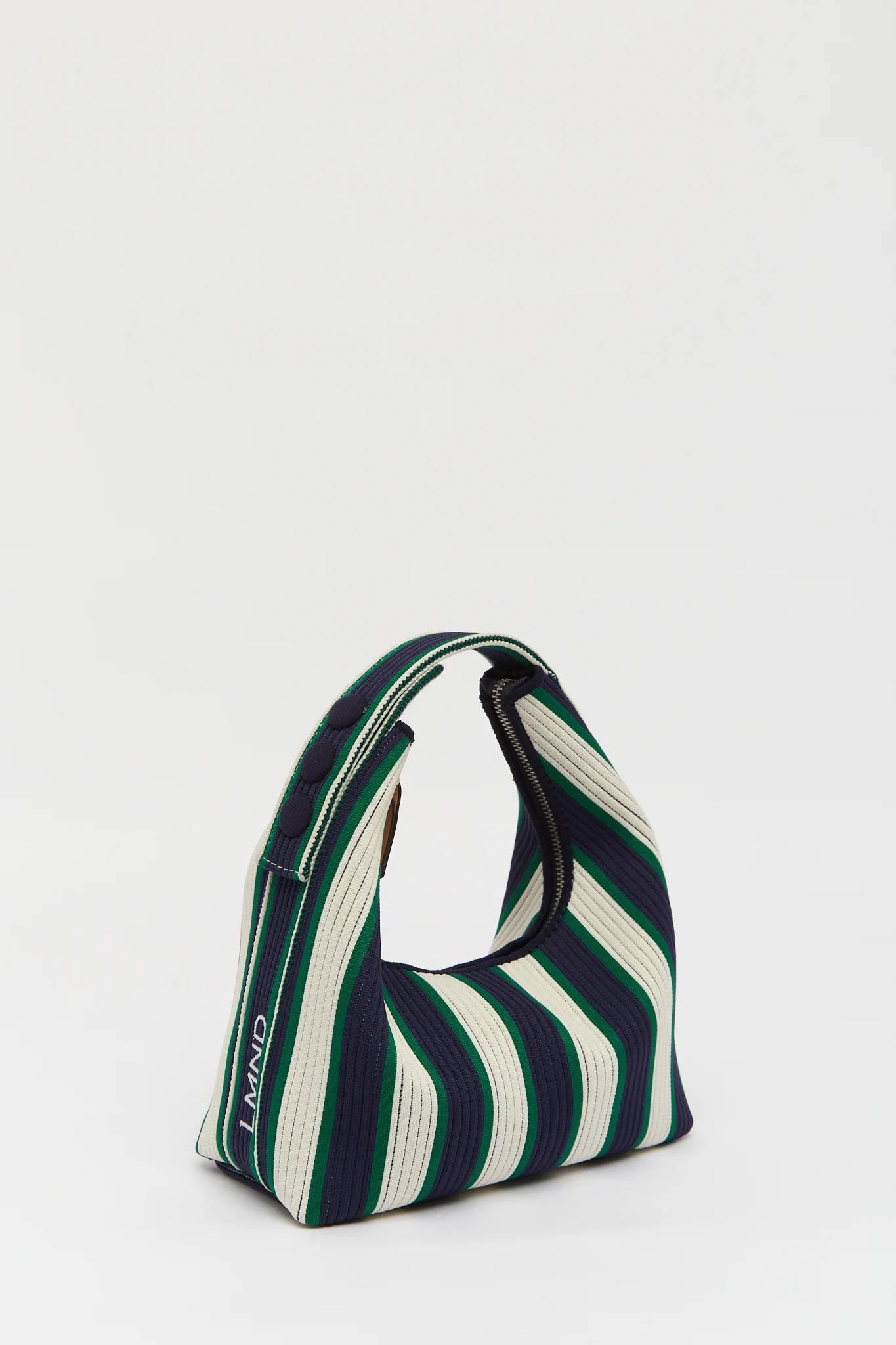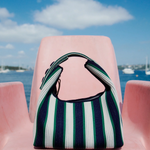 The LMND Mini Soft Bag in Navy/Verde Stripe