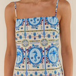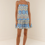 The Lima Mini Dress is crafted from a premium Cotton Poplin in our exclusive Lagoona Tile print. The Lima Mini Dress is a shift silhouette featuring a drop waist skirt, square neckline and thin straps for an elevated mini style.