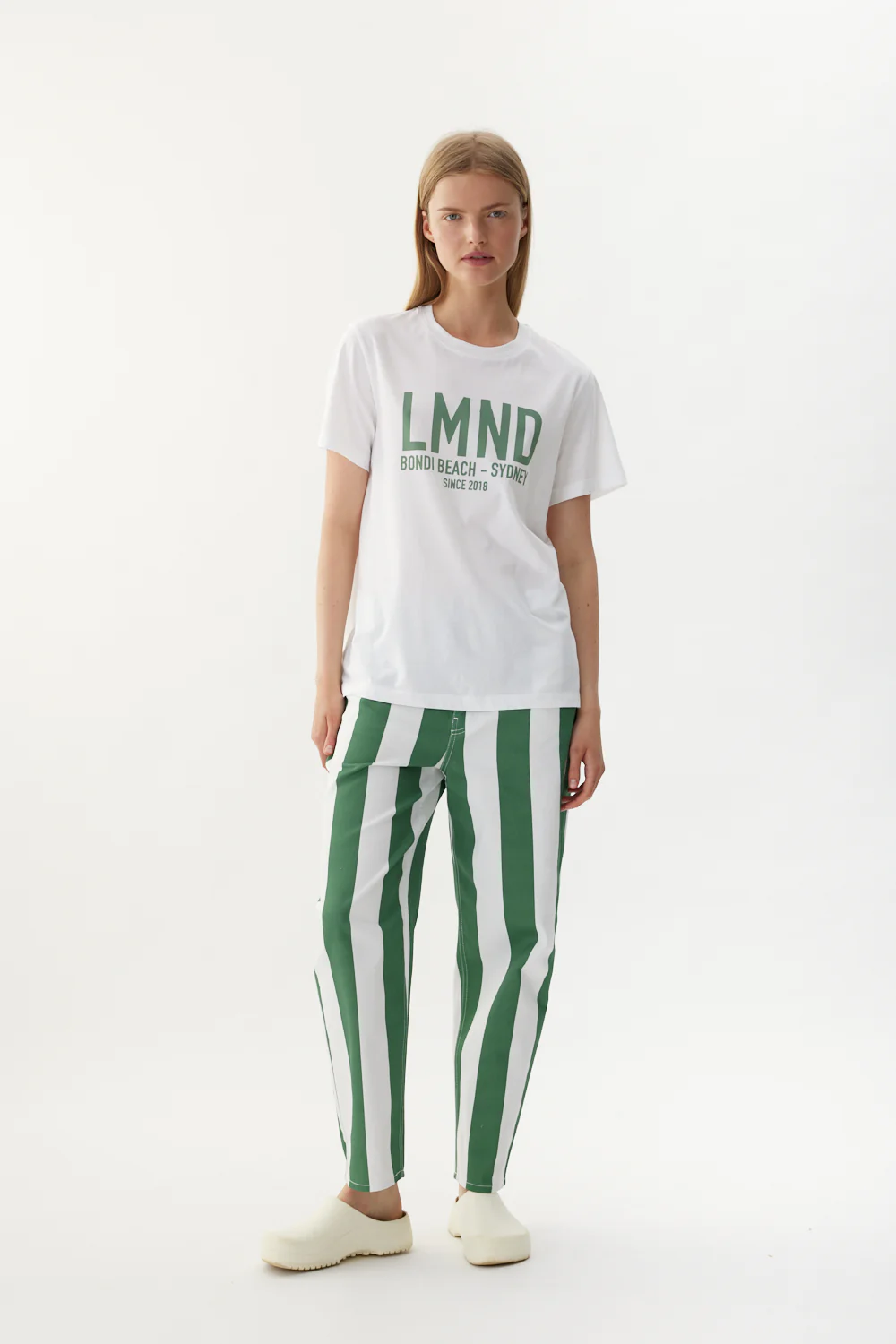 LMND Relaxed T-Shirt, Crafted from 100% cotton, this relaxed LMND T-shirt offers a comfortable fit perfect for everyday wear. It features a round neckline, short sleeves, and a unique customized LMND print, embodying both style and a relaxed seasonal look. Pair yours with your favorite Chiara Shorts and Shirt for a complete outfit.