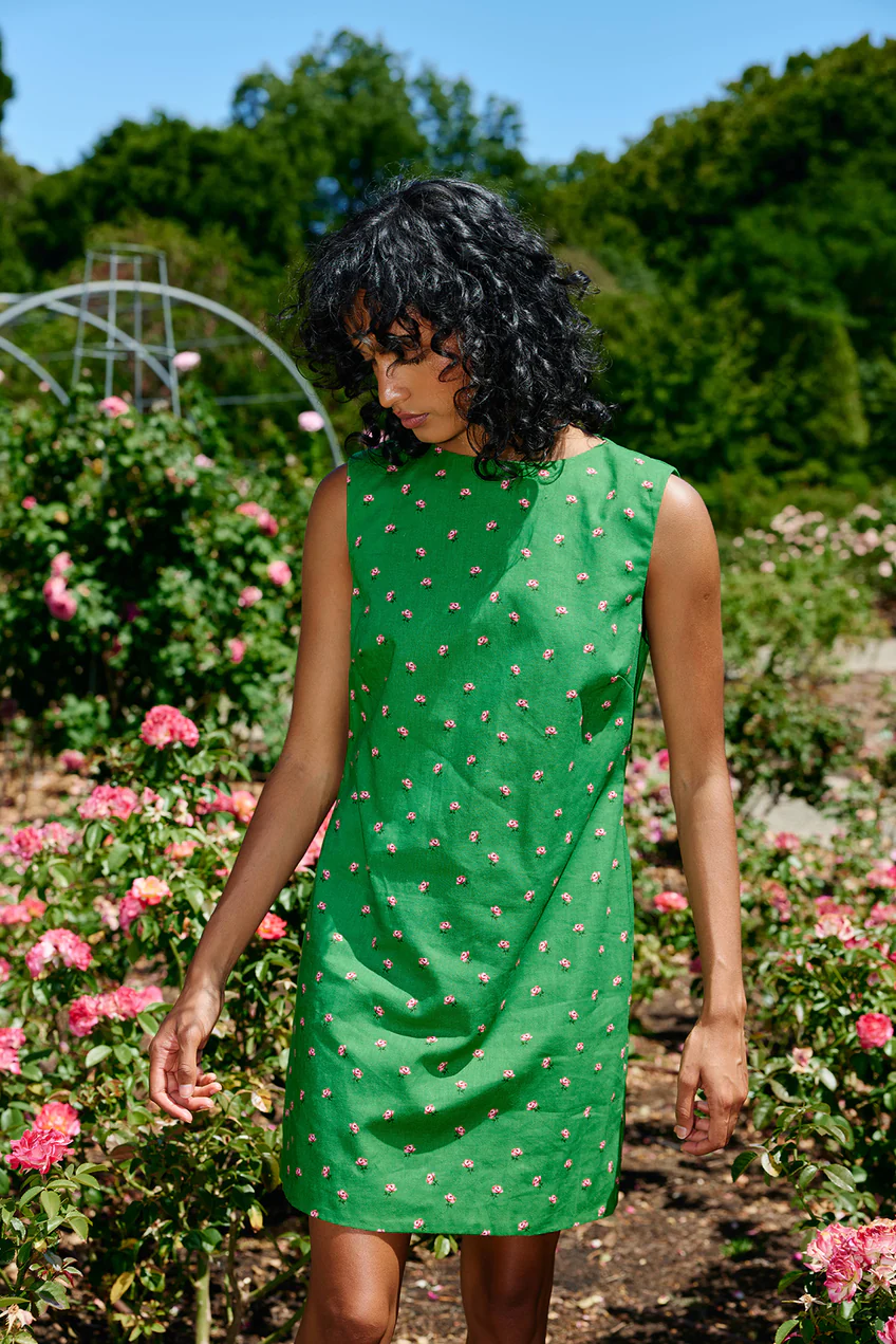 The Loelle Dress is a mini shift silhouette with a ditsy Leaf Rose print. Crafted with a soft, lightweight linen cotton blend the Loelle is an idyllic casual summer dress.