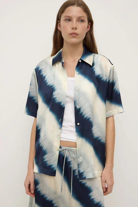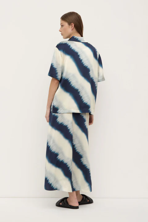 Crafted from a premium satin silk, this short sleeve shirt features a statement tie dye print. Designed to fit true to size, it can be paired with the matching Marabella Silk Skirt for a matching look.