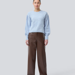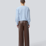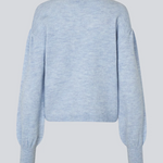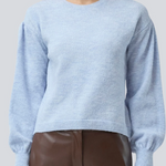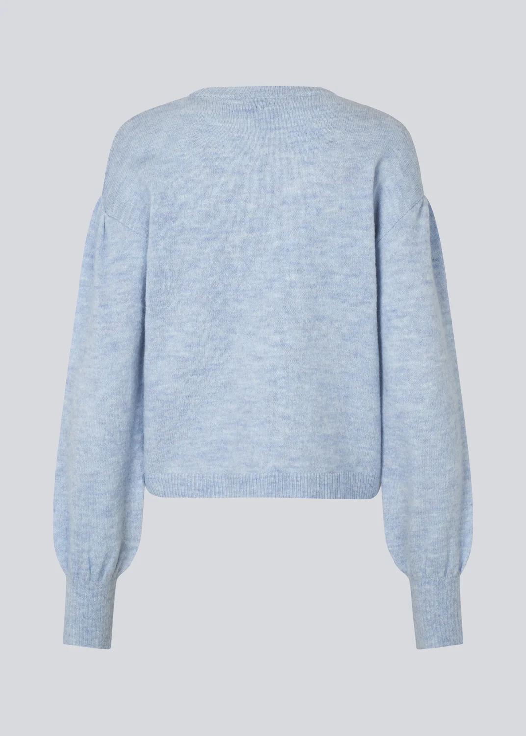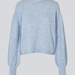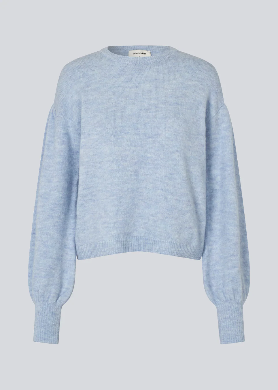 Light blue soft knit with loose sleeves. Patrick O-neck has a round neckline and ribbed hem.