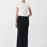 With nods to 90s silhouettes, the Pinstripe Maxi Skirt boasts a low waist, bias cut construction and maxi length. Designed to drape flatteringly along the body, the Pinstripe Maxi Skirt pairs perfectly with St. Agni's signature basics for a contemporary take on a timeless style.