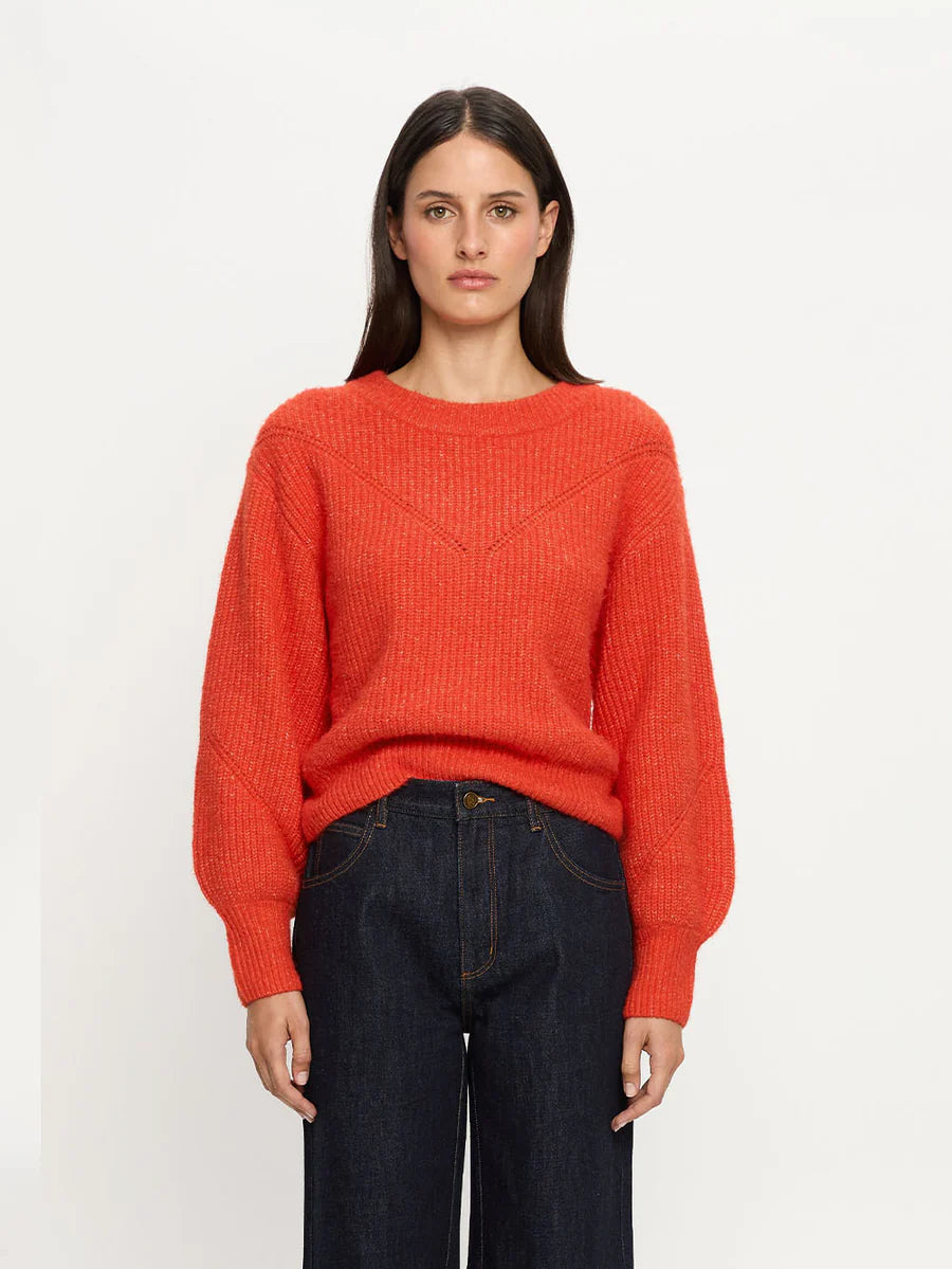 The Reine Knit is a relaxed fit featuring a blouson sleeve, ribbed cuff and is complete with stitching throughout.