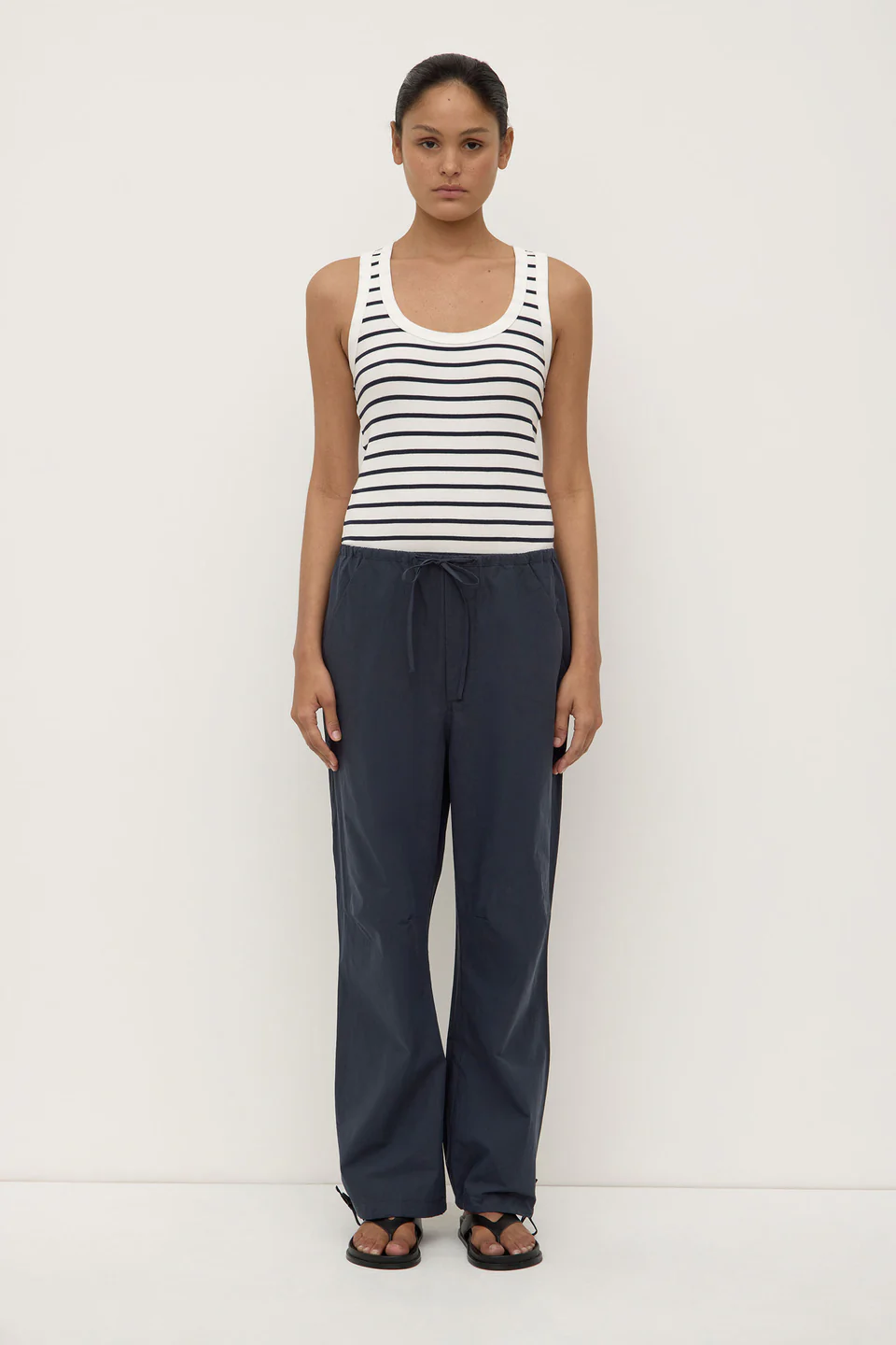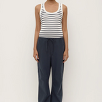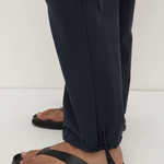 Softly structured pant made from a textured cotton. Designed for a relaxed look, it features an elasticated drawcord waistband, drawcord cuffs and slant side pockets.