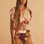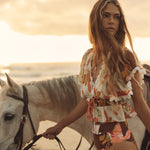 The Silk Ruffle Sleeve Drawstring Top is an effortless style that is both feminine and practical, perfect for summer getaways or city escapes.