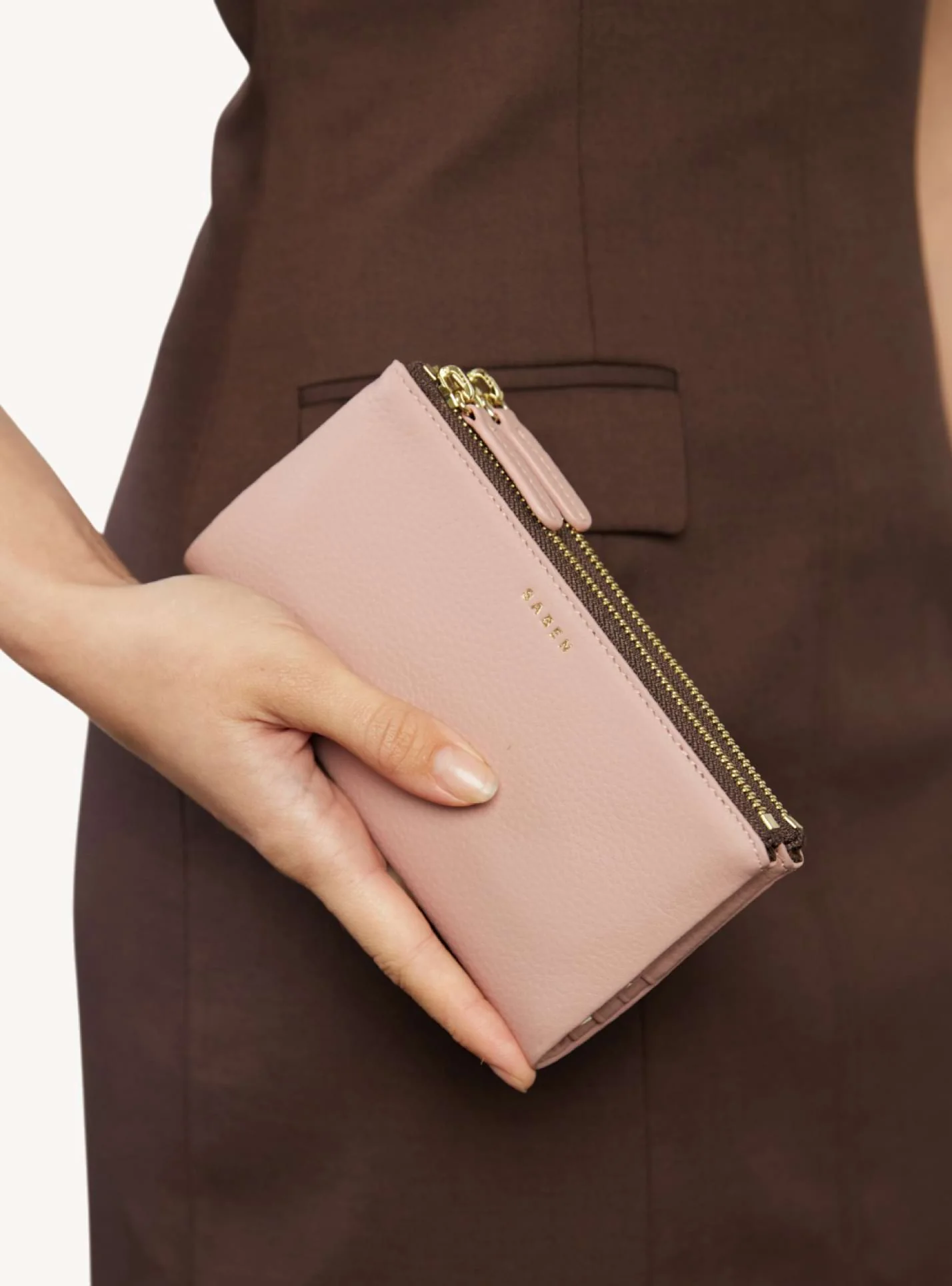 A beautifully soft leather wallet with pockets a plenty for your cards, coin and cash. She is your perfect partner from desk to dinner.