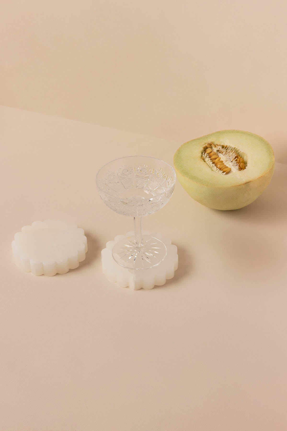Step up your coffee table game and drink in style with these gorgeous scalloped coasters. Designed in Australia. This versatile piece has many functional elements. Use it for beverage sipping, a decorative statement, glistening candles or even a trinket tray. The options are endless.