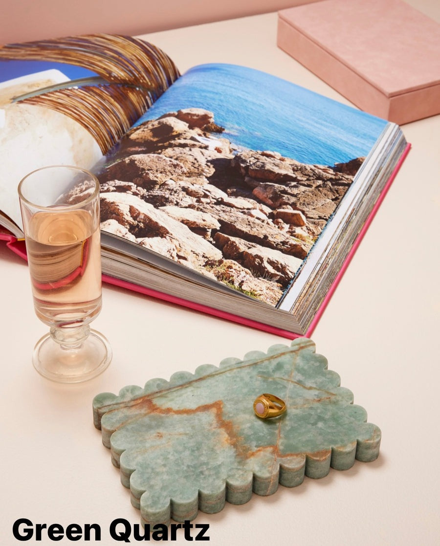 Curves in all the right places. A scalloped profile non scratch tray or book end designed to display your favourite everyday rituals such as jewellery, skin care, beverage sipping, glistening candles or even a trinket tray. When placed standing these pieces can also act as a book end. The options are endless.